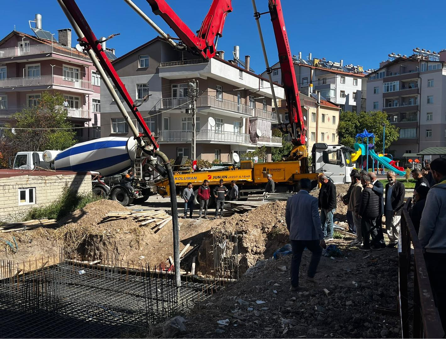 Yapılan dua ve kurban kesilmesi sonrasında temele ilk harç protokol tarafından butona basılarak döküldü.