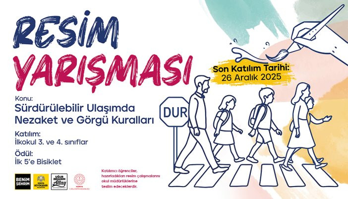Konya Büyükşehir Belediyesi, 31 ilçedeki ilkokul ve lise öğrencilerini, toplu taşıma ve bireysel ulaşımda nezaket ve görgü kurallarını resim ve fotoğrafla anlatmaya davet ediyor. Başvurular 26 Aralık 2025’e kadar kabul edilecek.