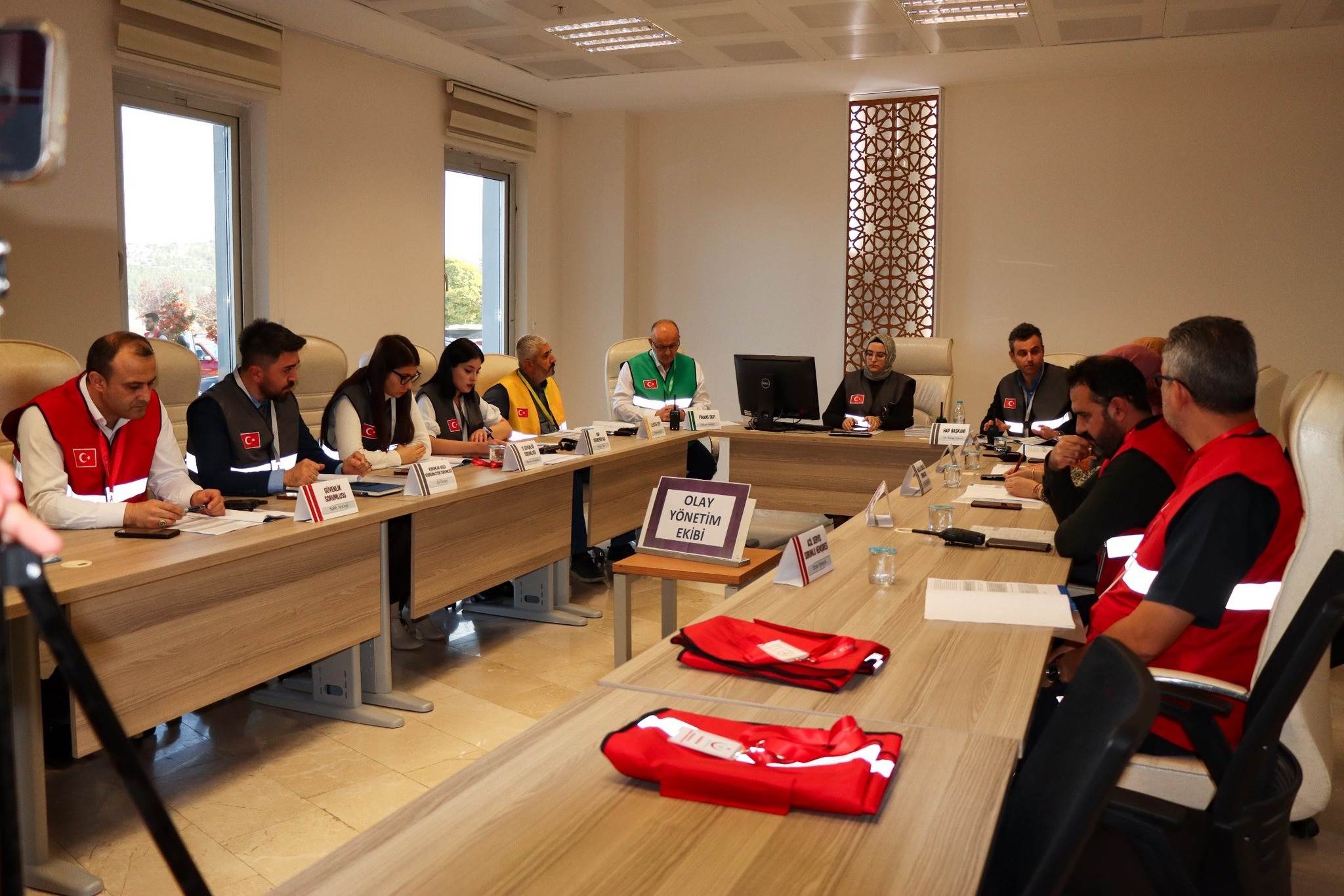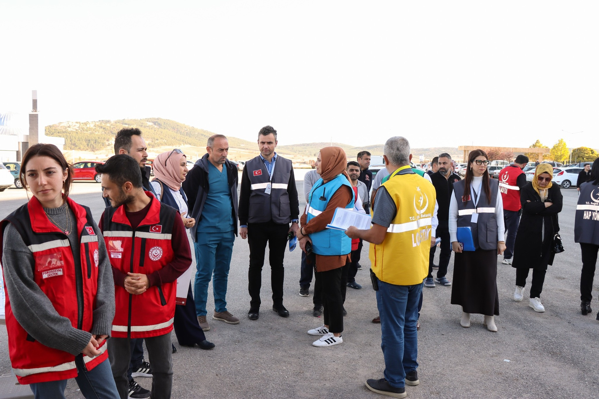 İlk etapta hastane yetkililerinin katılımıyla masa başı tatbikatı yapıldı.