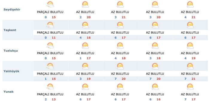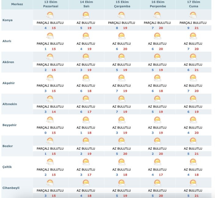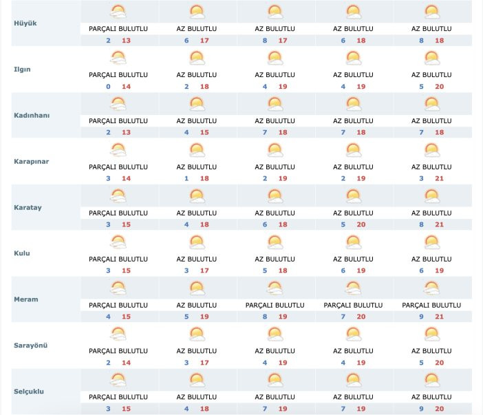 İşte ilçe ilçe Konya hava durumu tahmini: