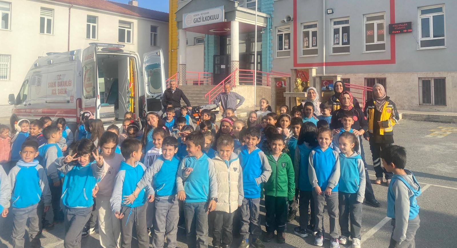 Eğitim kapsamında 112 Acil’in nasıl çalıştığı, hangi durumlarda aranması gerektiği ve sağlık ekiplerinin görevleri öğrencilere anlatıldı. Ardından okul bahçesine getirilen ambulans ve sağlık ekipmanları tanıtıldı.