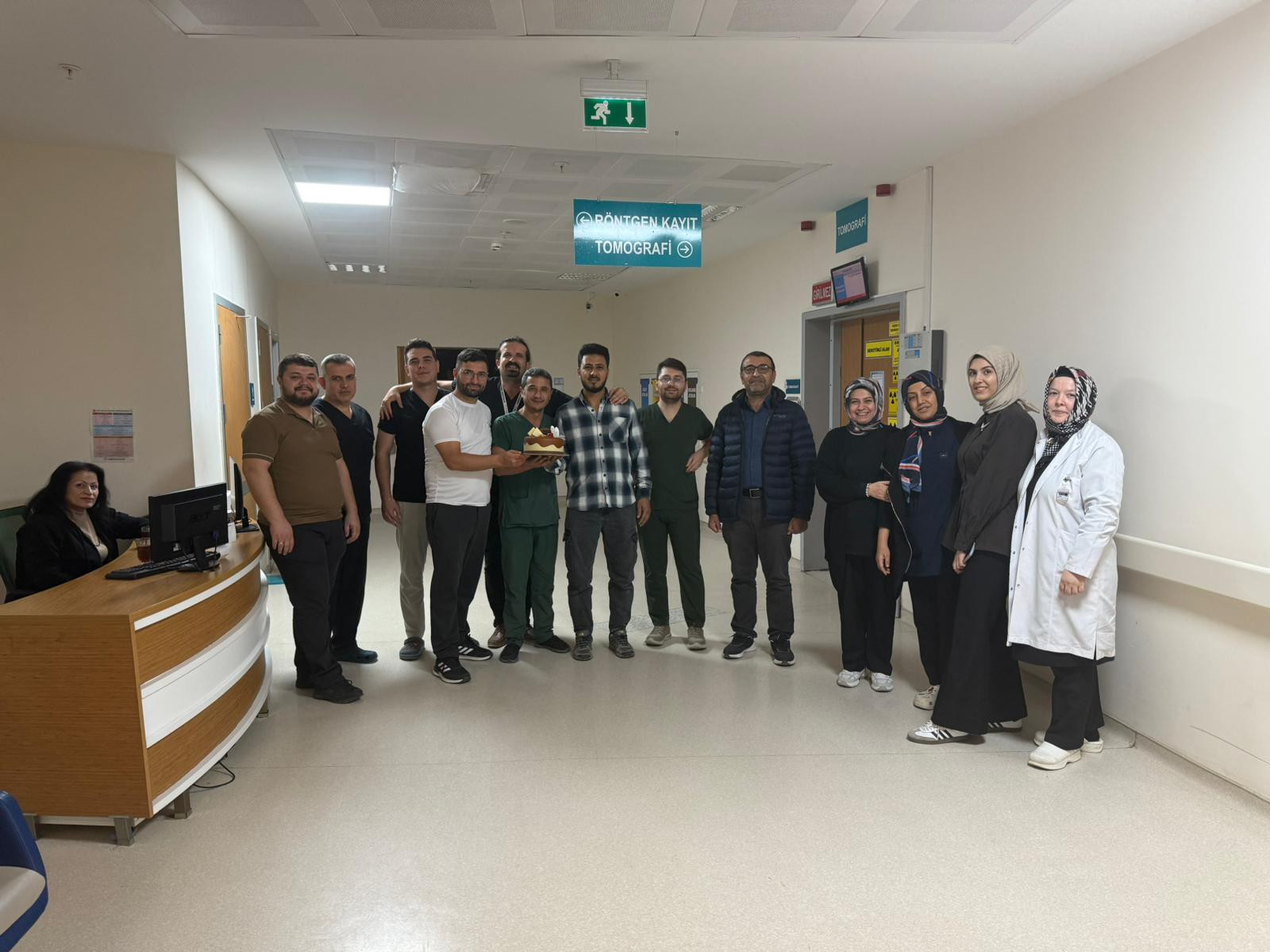 İlçe Temsilcisi Talip Akbulut, sağlık çalışanlarını özel günlerinde yalnız bırakmadı ve kutladı. Ardından pasta kesildi.