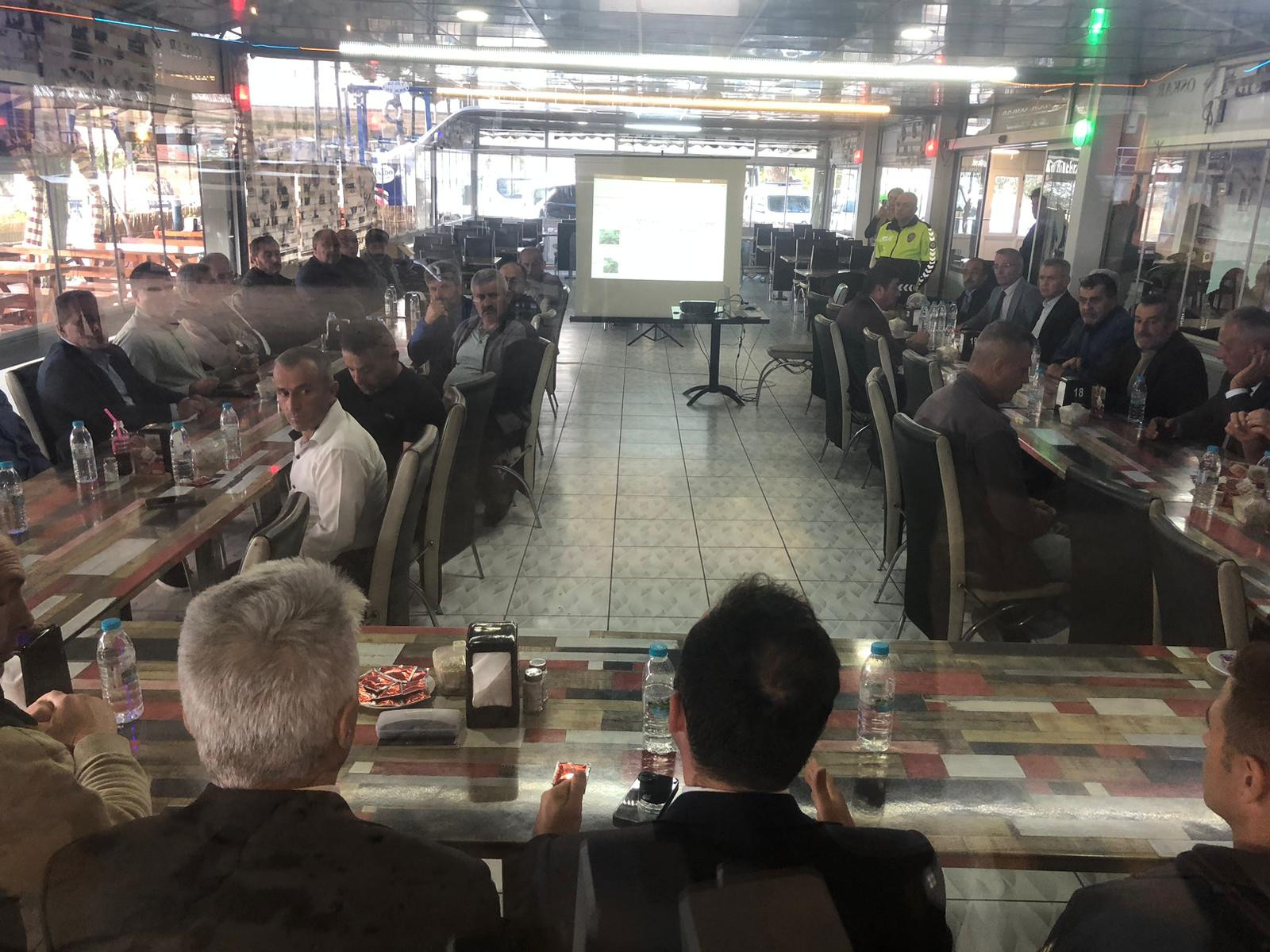 Programda, yemek ikramının ardından muhtarlara İlçe Emniyet Amirliği tarafından trafik konularında sinevizyon gösterimi yapıldı.