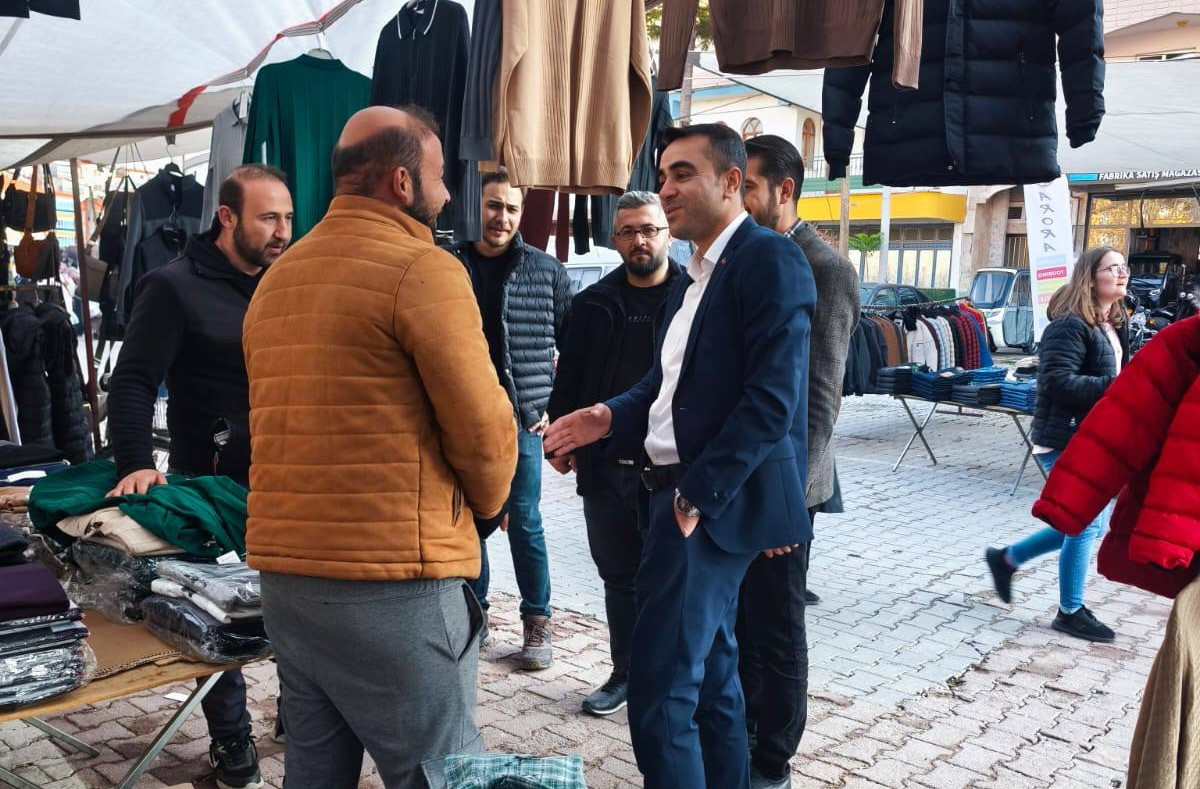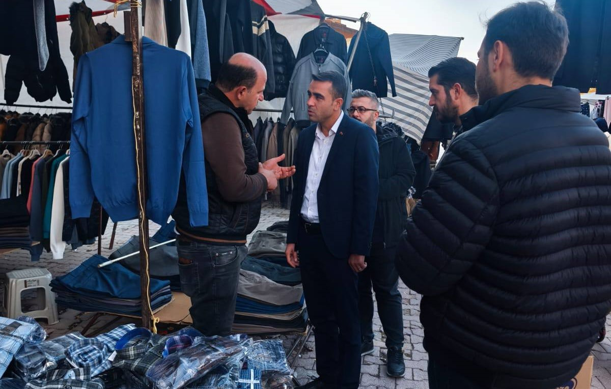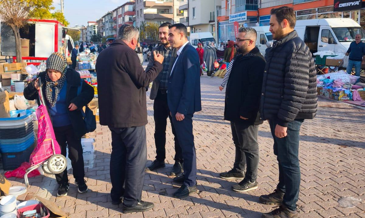 Pazar yerini tek tek dolaşan İlçe Başkanı Güzel ve meclis üyeleri, pazarcı esnafıyla ve alışveriş yapan vatandaşlarla samimi sohbetler gerçekleştirdi.