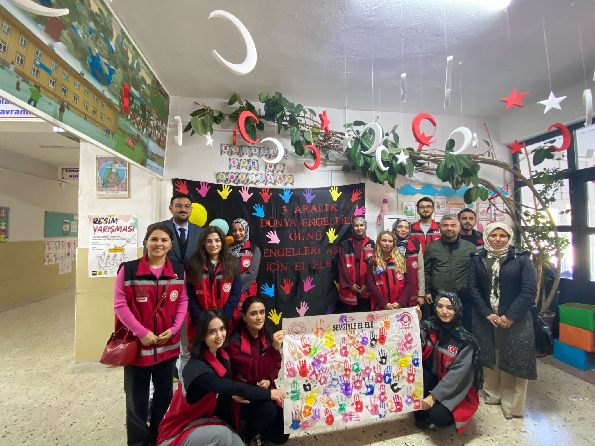 Minik öğrencilerin hazırladığı renkli el baskıları ise günün anlam ve önemine dair en samimi mesajlardan biri oldu. Çocukların el izleri, engellerin sevgi ve anlayışla aşılabileceğini simgeleyen anlamlı bir çalışma olarak dikkat çekti.