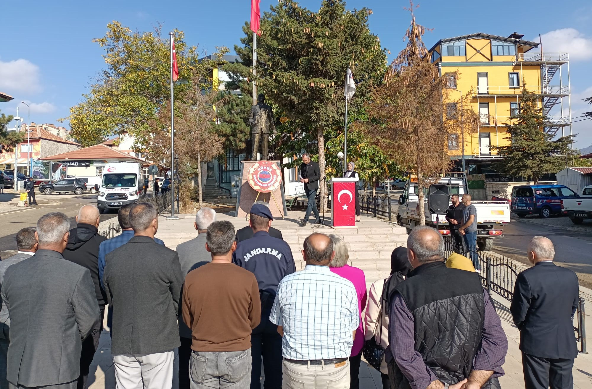 Anıt alanında gerçekleştirilen programda Hüyük Muhtarlar Derneği Başkanı Süleyman İlkay Ceylan tarafından Atatürk Anıtına çelenk bırakıldı, ardından İstiklal Marşı okundu, saygı duruşunda bulunuldu.
