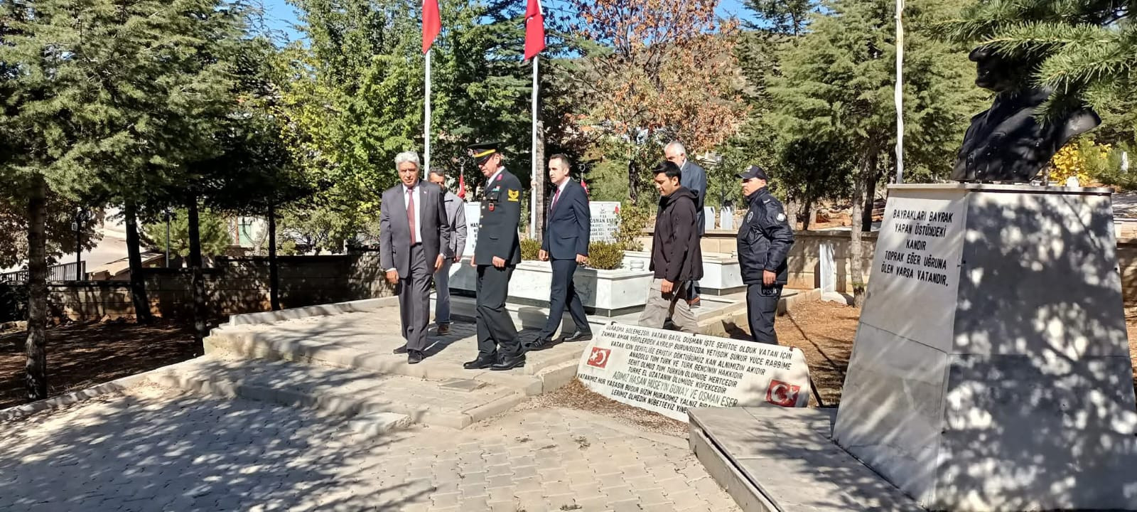 29 Ekim Cumhuriyet Bayramı dolayısıyla İlçe Kaymakamı Ebrar Evsen, Belediye Başkanı Sadık Sefer ve beraberindeki protokol üyeleri, ilçe merkezindeki şehit mezarlarını ziyaret etti.