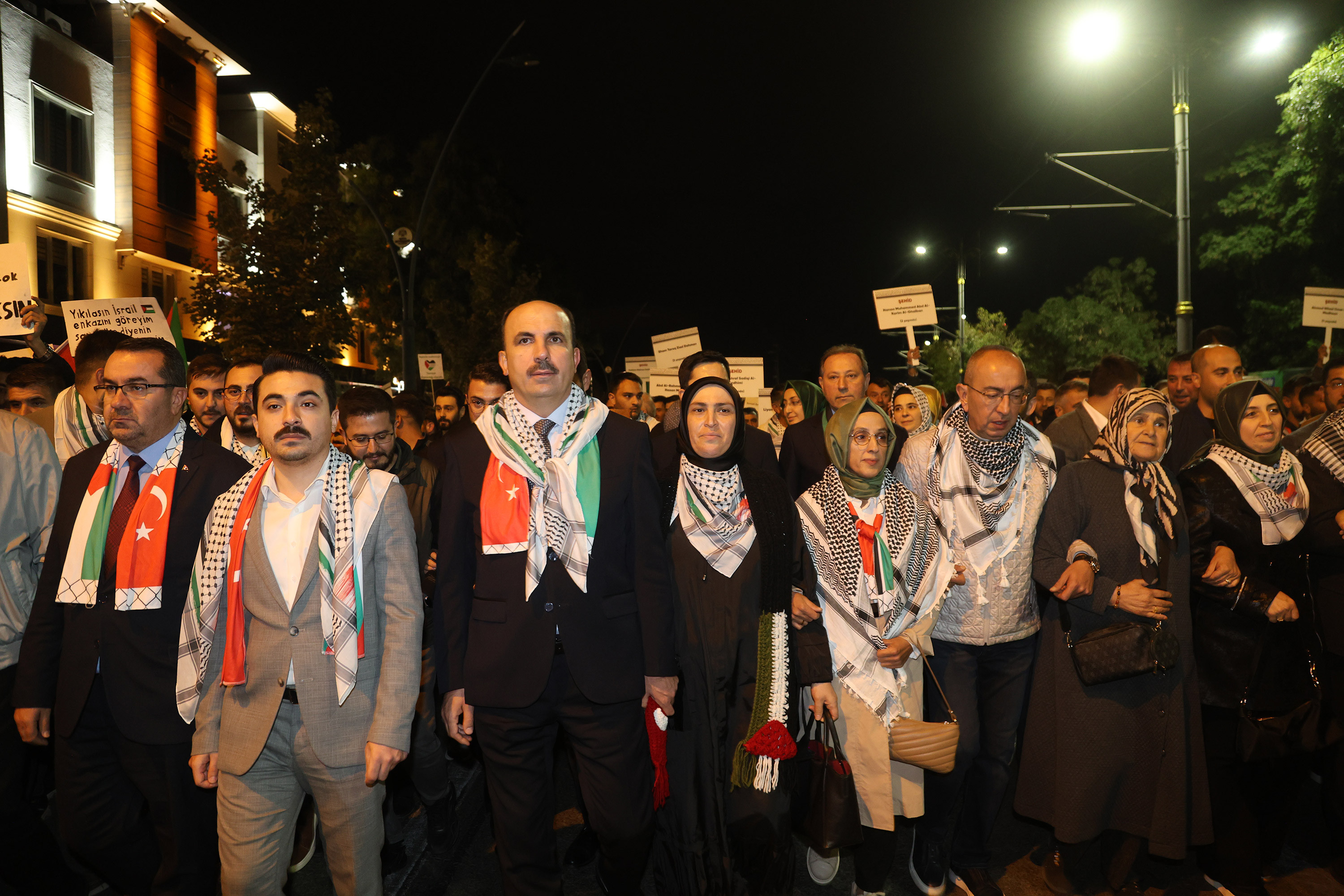 Konya caddelerindeki tarihi eylemde vatandaşlar ellerinde Gazze’deki katliamlarda şehit düşen bebeklerin ve çocukların isimlerinin yazılı olduğu dövizler ile Filistin ve Gazze’ye destek pankartları taşıdı.