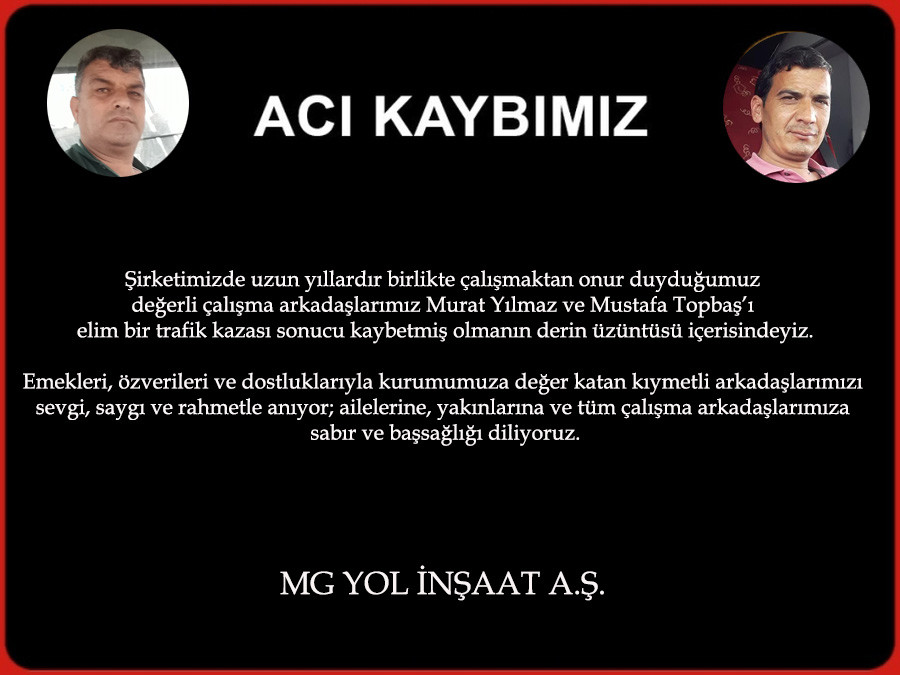 Öte yandan, kazanın ardından MG Yol İnşaat A.Ş. firmasından da taziye mesajı paylaşıldı.