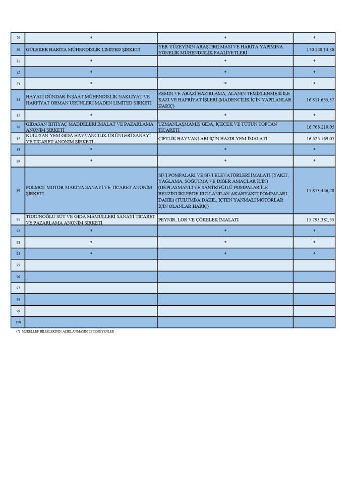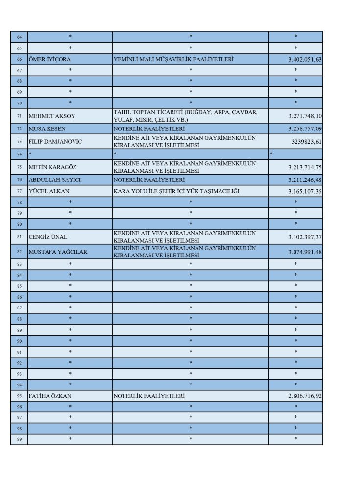 Rekortmenler listesinde ayrıca noterler, mali müşavirler, gıda, gayrimenkul ve inşaat alanlarında faaliyet gösteren çok sayıda isim yer aldı.