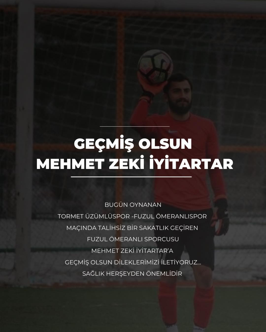 “Bugün oynanan Tormet Üzümlüspor-Fuzul Ömeranlıspor maçında talihsiz bir sakatlık geçiren Fuzul Ömeranlı sporcusu Mehmet Zeki İyitartar’a geçmiş olsun dileklerimizi iletiyoruz. Sağlık her şeyden önemlidir”