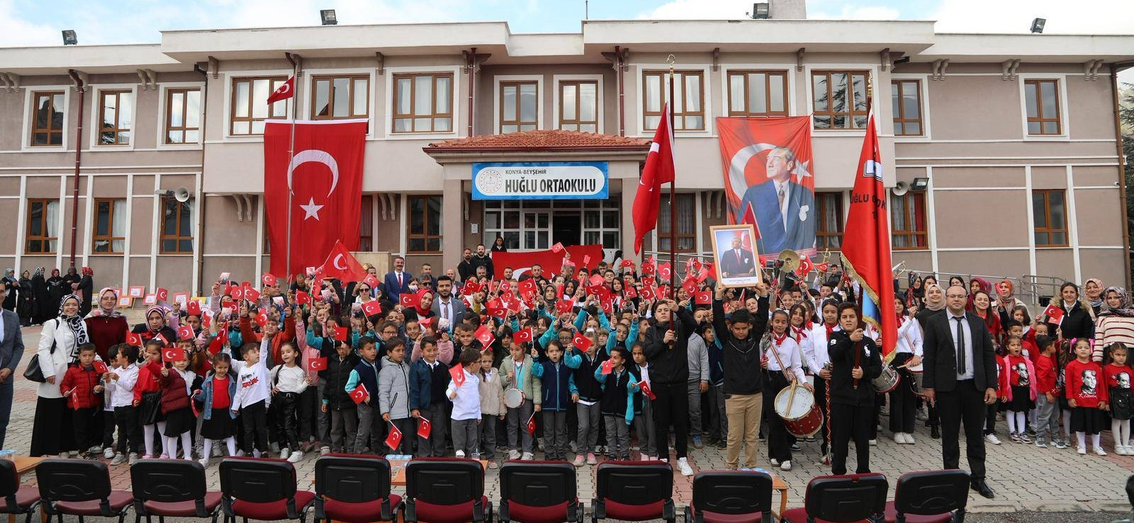 Yerleşim merkezindeki kutlamalara Huğlu Ortaokulu öğrencilerinin gösterileri adeta damgasını vurdu.