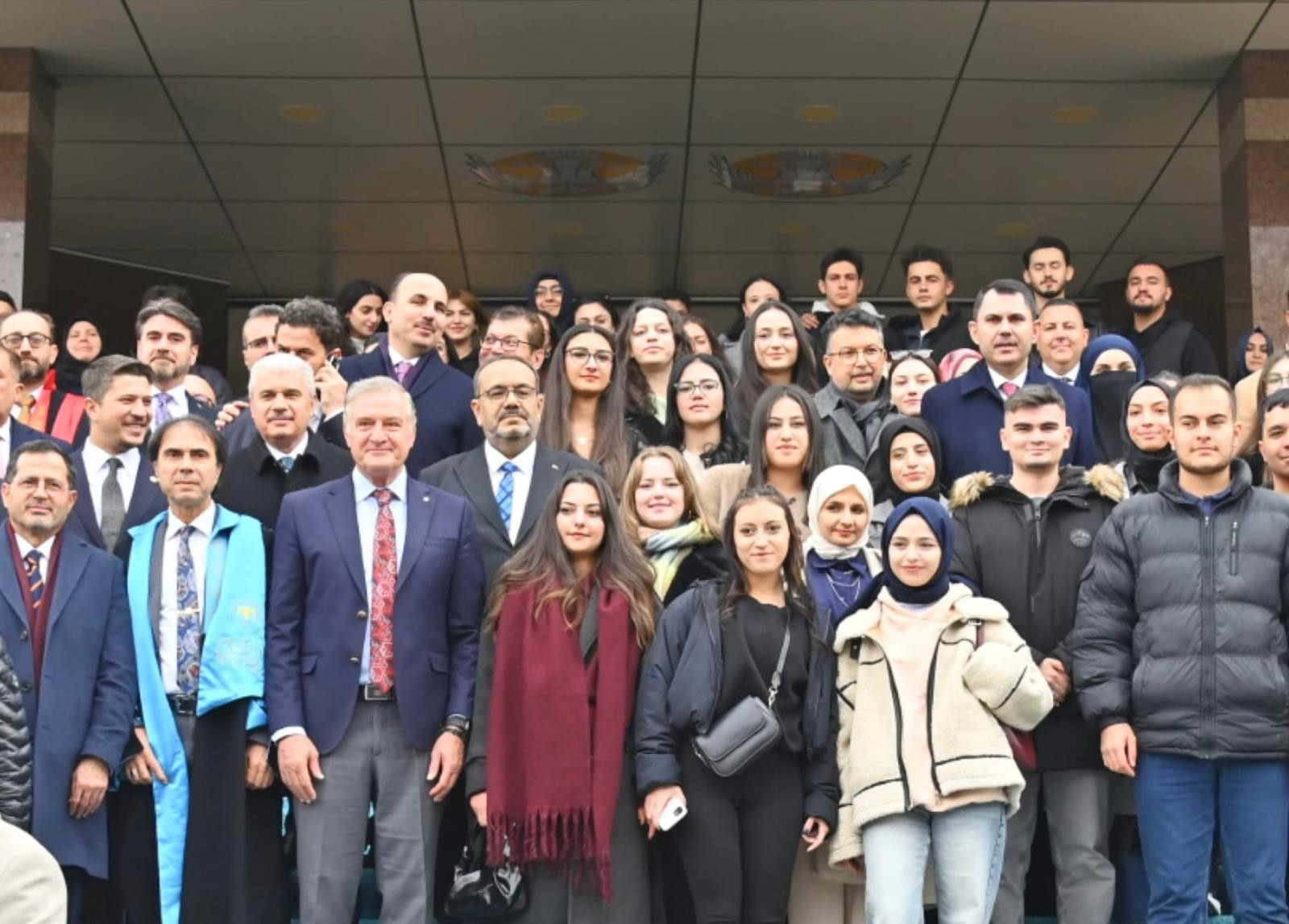Selçuk Üniversitesi'nden fahri doktora unvanı alan Çevre, Şehircilik ve İklim Değişikliği Bakanı Murat Kurum, düzenlenen törenin ardından Sosyal Hizmet Bölümü öğrencileriyle bir araya geldi.