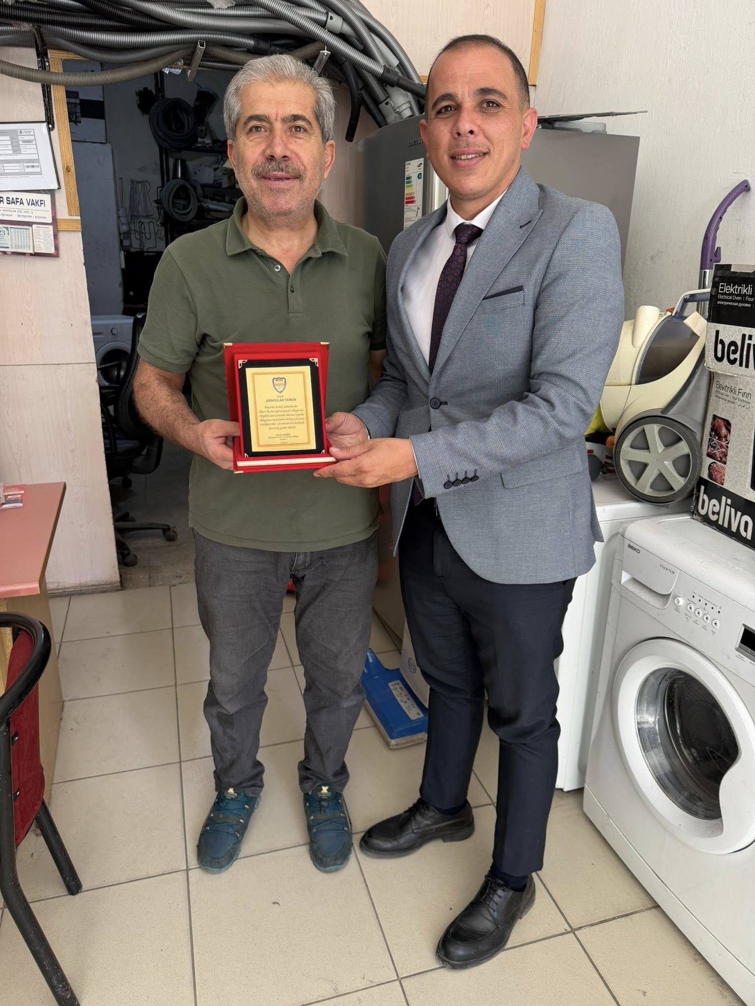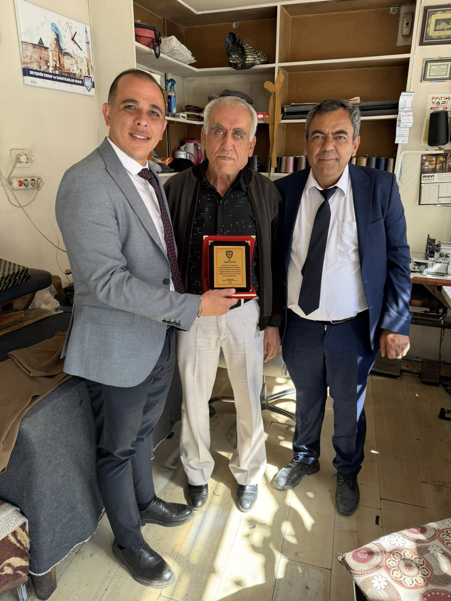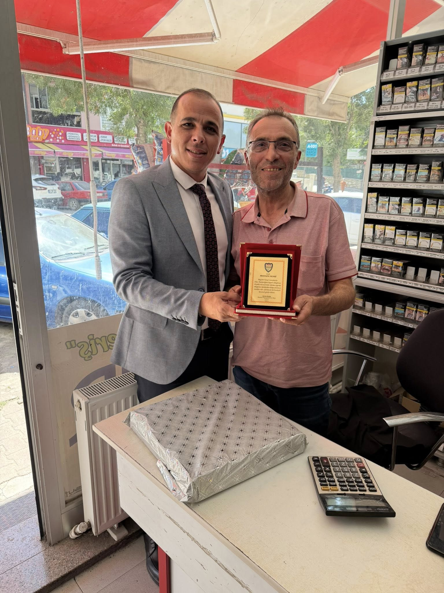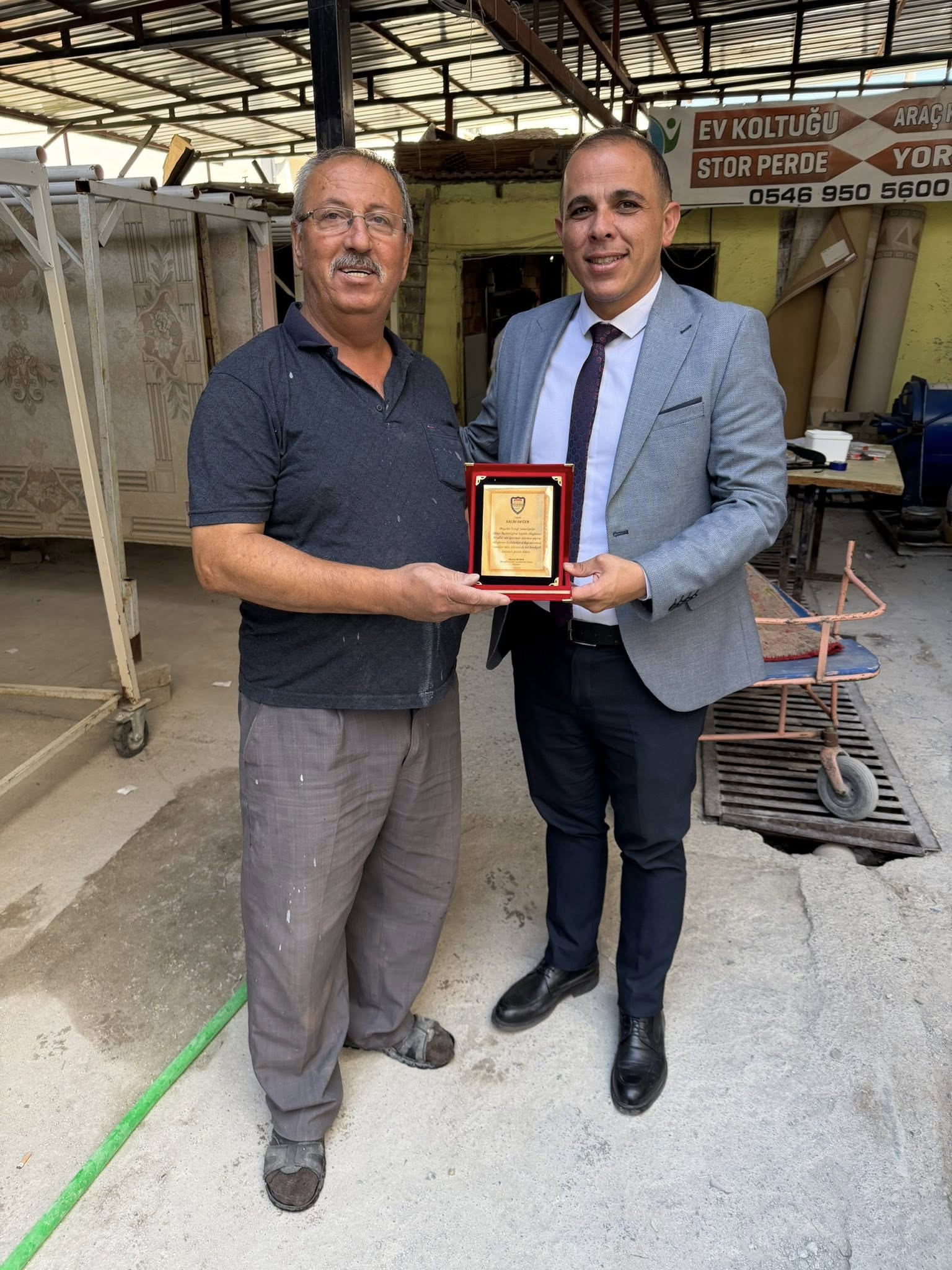 35 yıl ve üzerinde faaliyet gösteren esnaf ve sanatkarları mesai yaptıkları işyerlerinde ziyaret eden Esnaf ve Sanatkarlar Odası Başkanı Muhlis Bülbül, ilçe halkına neredeyse yarım asra dayanan hizmetlerinden dolayı teşekkür ederek plaket verdi.