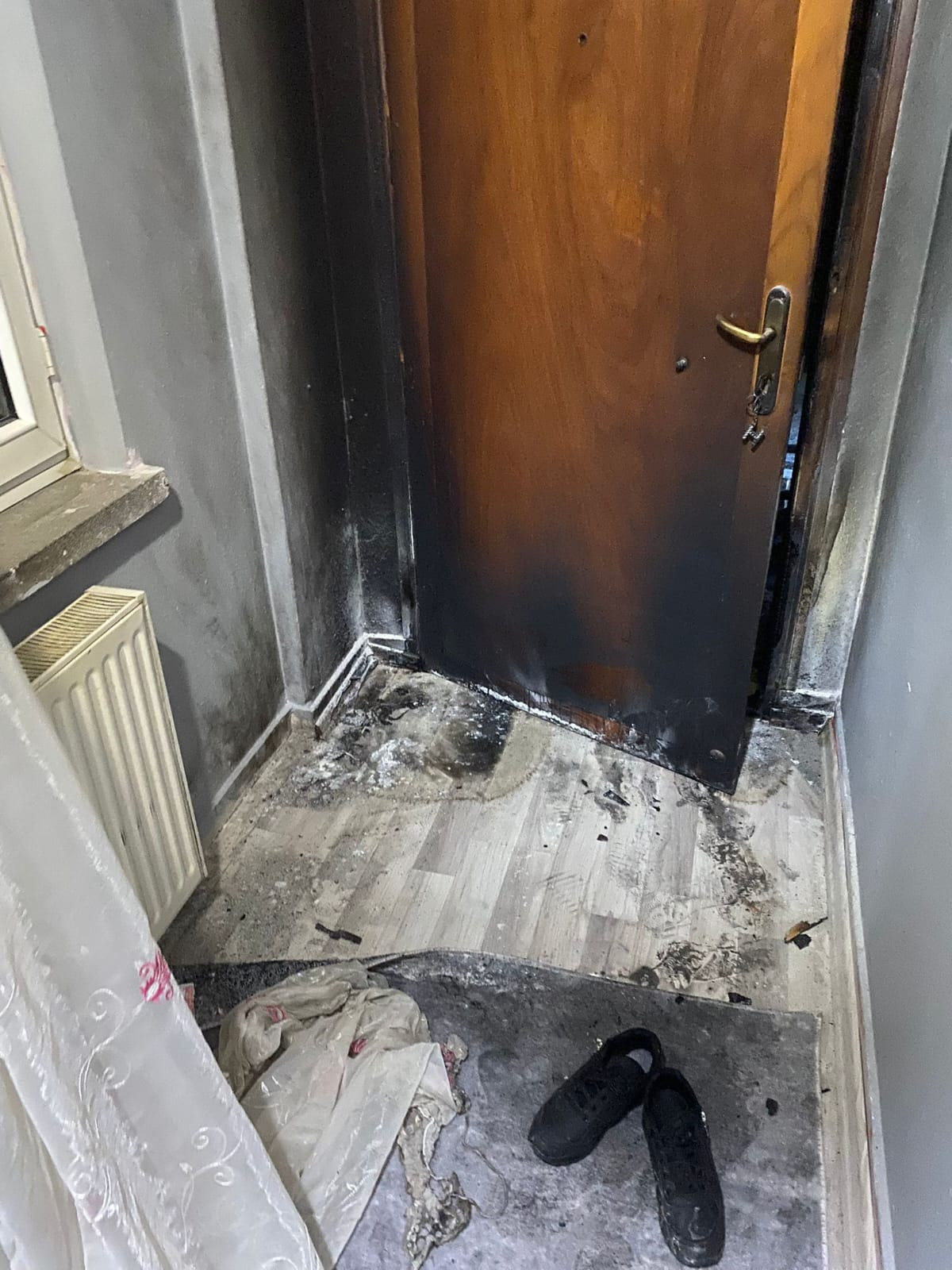 Yangın yaşanan diğer adreste ise apartmana girilerek 2.kattaki dairenin dış kapısının benzin dökülüp ateşe verilmesi neticesinde olayın yaşandığı güvenlik kamera kayıtlarının incelenmesi sonucunda ortaya çıktı.