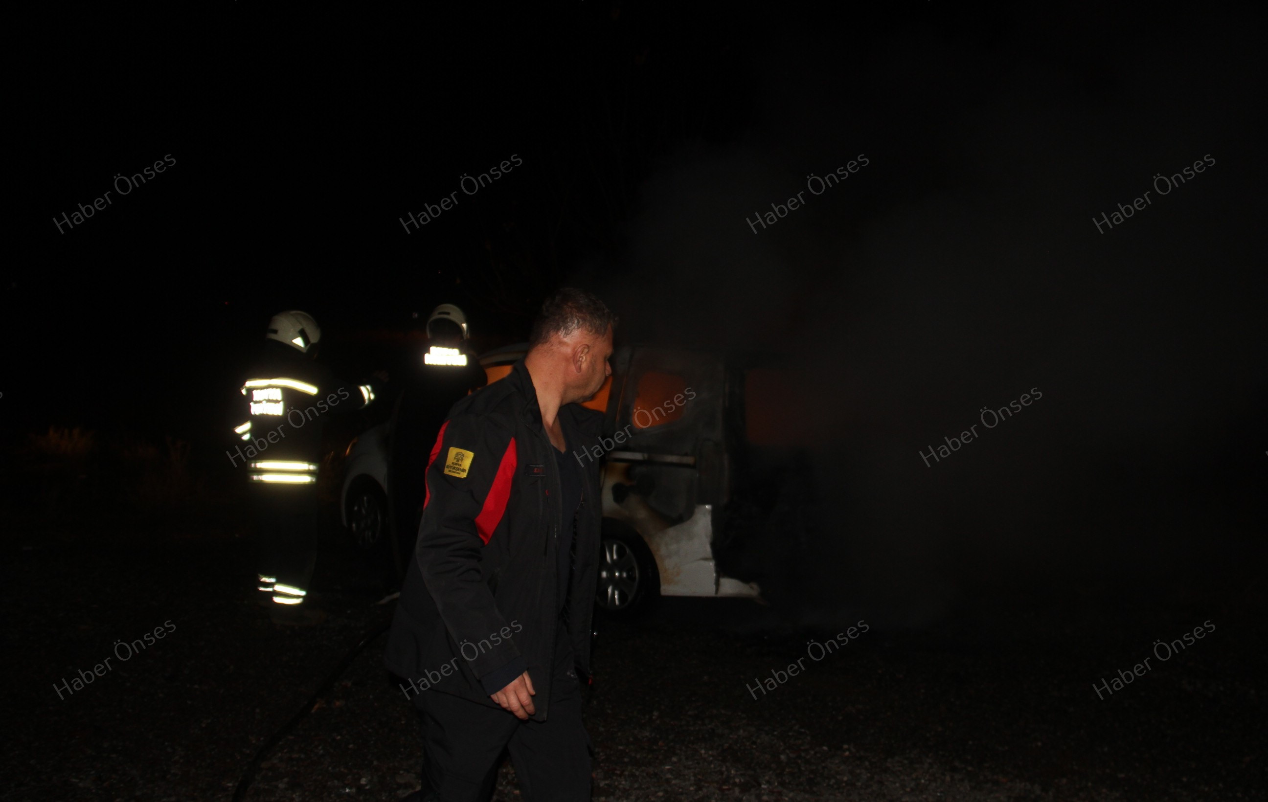 İtfaiye ekipleri boş arsa üzerinde park halinde olan ve alev alev yanan araca su sıkarak müdahale etti.