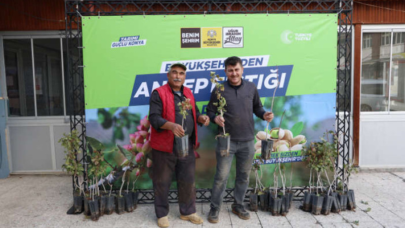 Konya Büyükşehir Belediyesi, kuraklık riskine karşı dayanıklı ürün çeşitliliğini artırmak ve çiftçinin gelirini yükseltmek amacıyla Antep fıstığı fidanı desteklemelerine devam ediyor.