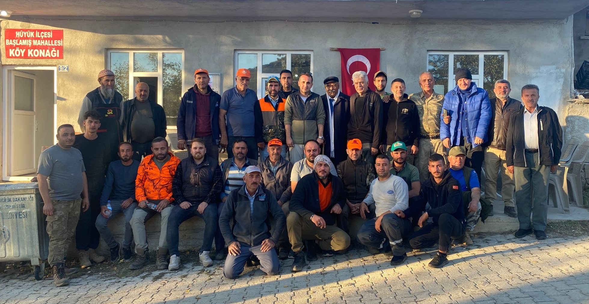 İlçede artan yaban domuzu popülasyonu ve tarım arazilerinde yaşanan zararlar sebebiyle Hüyük İlçe Kaymakamlığının talimatları doğrultusunda Milli Parklar Genel Müdürlüğü izniyle gerçekleştirilen sürek avına jandarma ve sağlık ekipleri de eşlik etti.