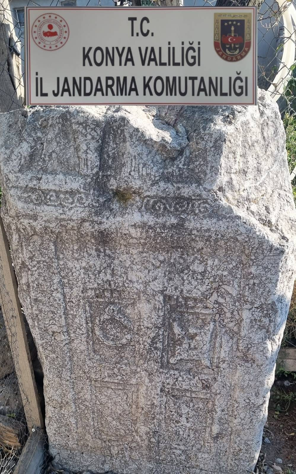 Kulu’da KOM Şube Müdürlüğü ve İlçe Jandarma Komutanlığı ekiplerince yapılan istihbari çalışmalar neticesinde 5 kişinin izinsiz kazı yaptığı ve evlerinde tarihi eser bulundurdukları tespit edildi. Şüphelilerin adreslerinde yapılan aramalarda Roma dönemine ait olduğu değerlendirilen bir mezar steli ile ruhsatsız bir av tüfeği ele geçirildi.