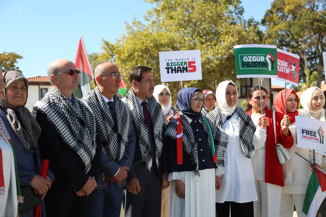 Konya Kılıçarslan Meydanı’nda düzenlenen etkinlikte yüzlerce kadın, Gazze’deki zulme karşı sessiz bir haykırışla dayanışma mesajı verdi.
