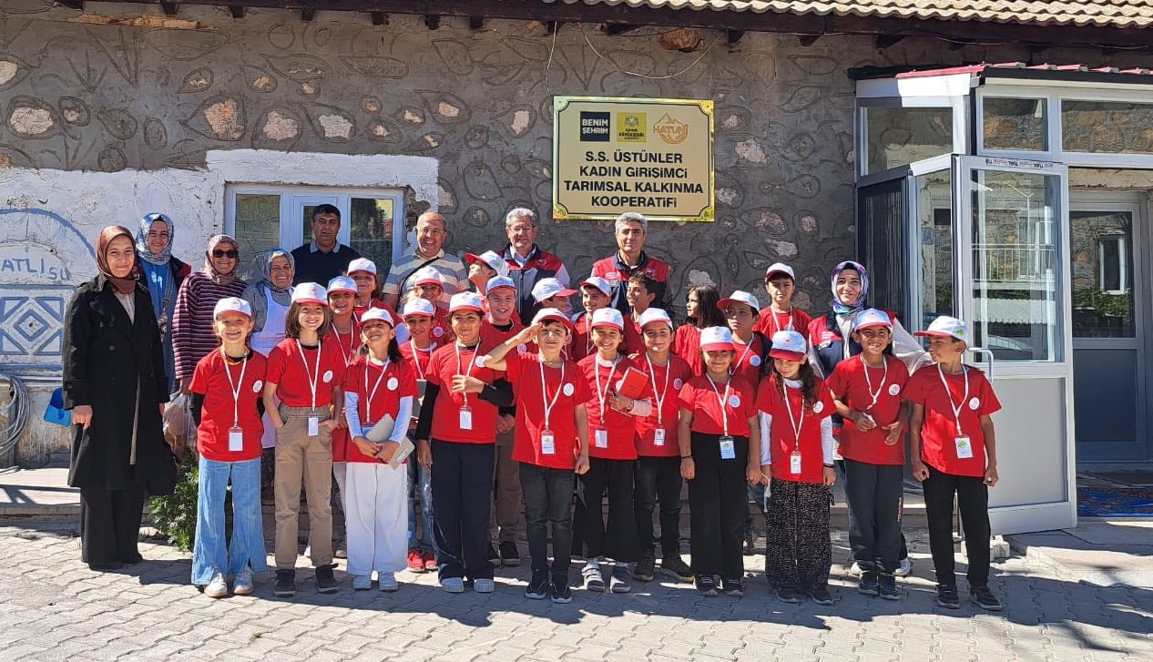 Beyşehir Gölü sahilinde yürüyüş de yapan çocuklar, Üstünler Mahallesinde kurulu bulunan Kadın Girişimci Tarımsal Kalkınma Kooperatifini de gezerek kooperatifler hakkında bilgi sahibi oldu.