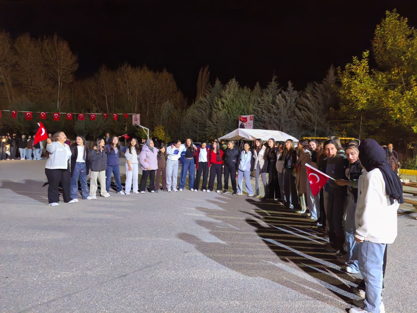 Eğitim camiası mensupları ile öğrencilerin de iştirak ettiği fener alayı yürüyüşü anıt alanında başlarken, Durmuş Akkuş Anadolu Lisesi önünde son buldu.