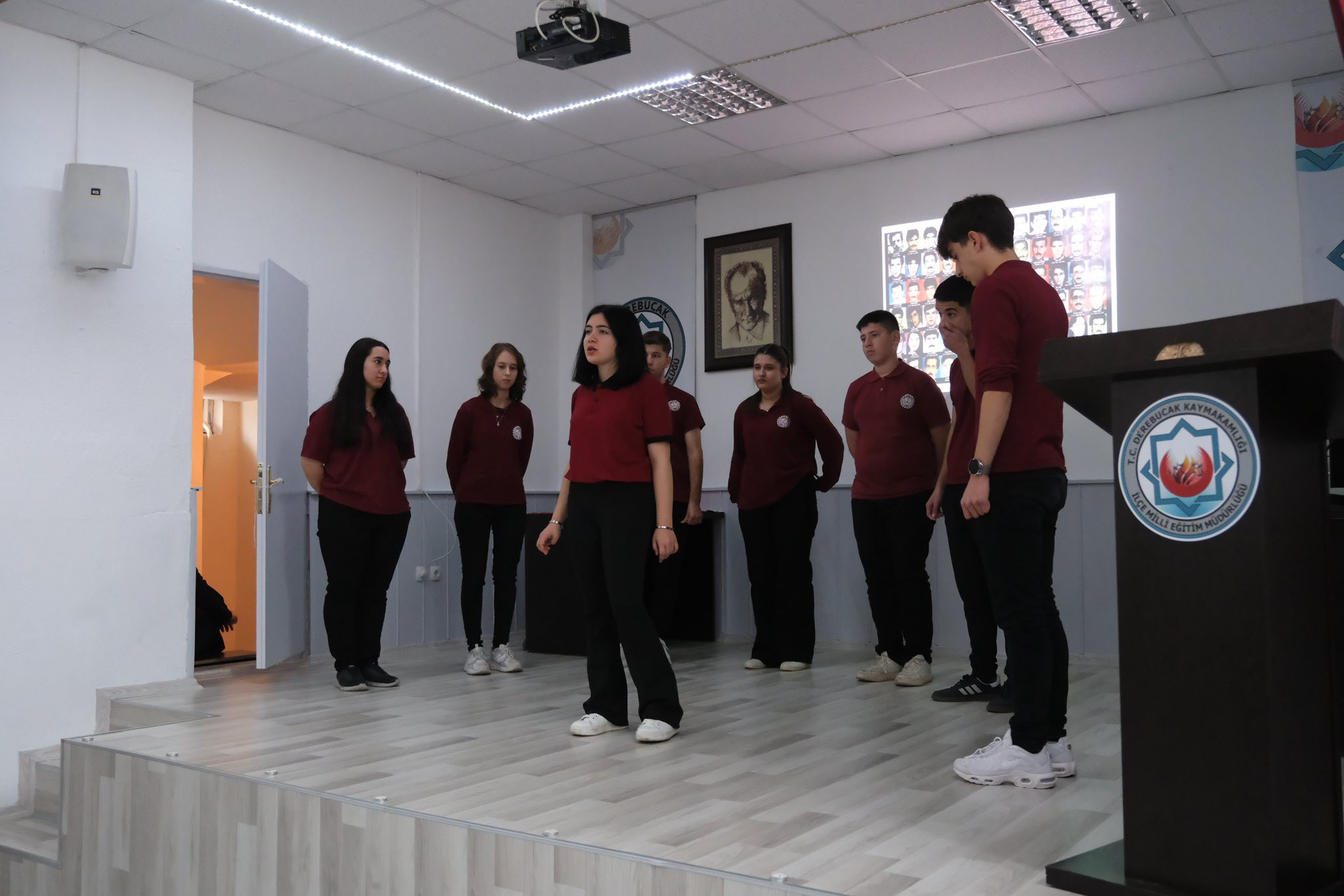 Atatürk Anıtına çelenk sunumunun ardından kutlamalar 15 Temmuz Şehitleri İmam Hatip Ortaokulunda devam etti.