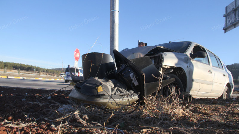 Otomobil trafik ışığı direğine çarptı, 2 kişi yaralandı