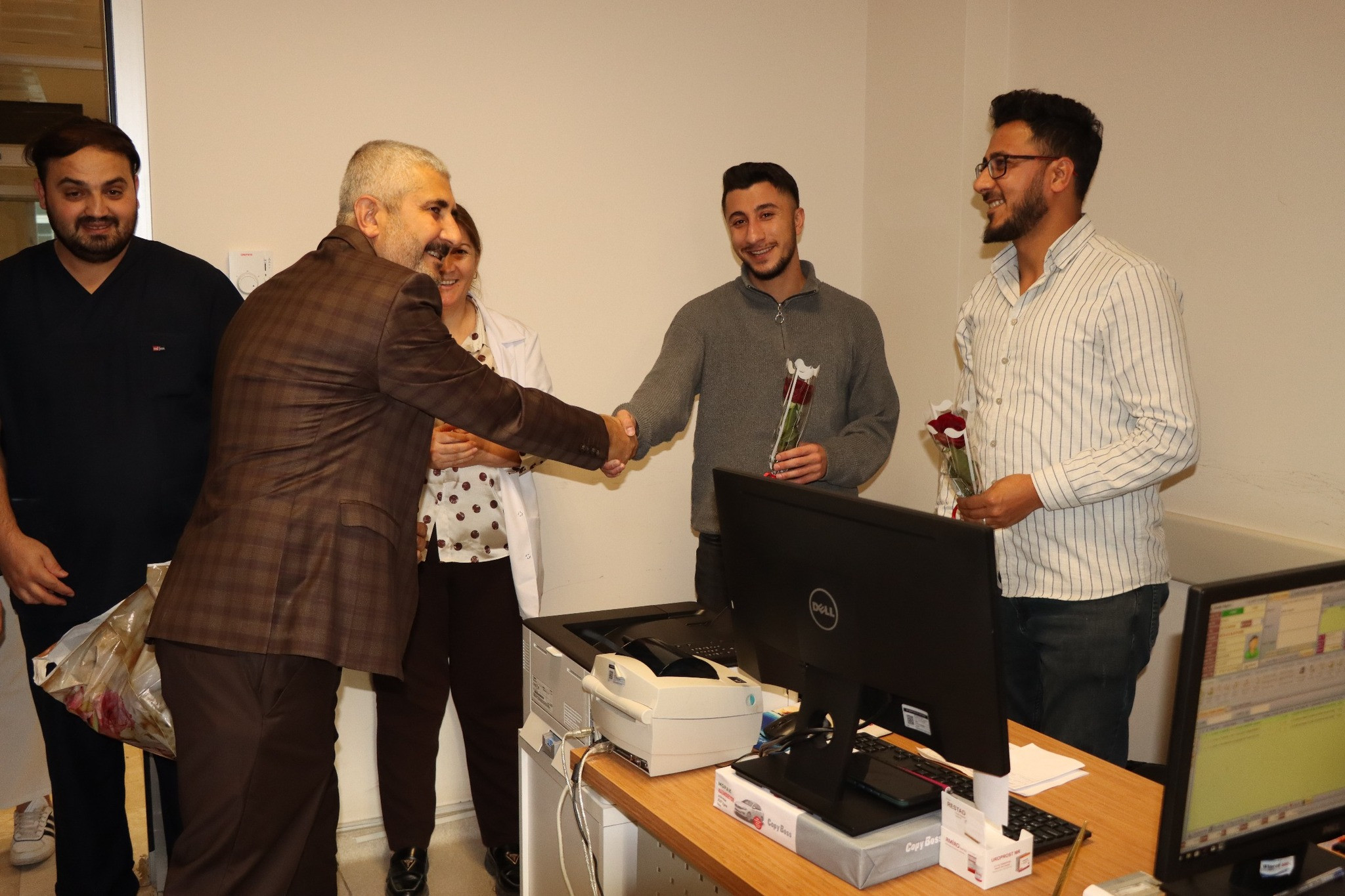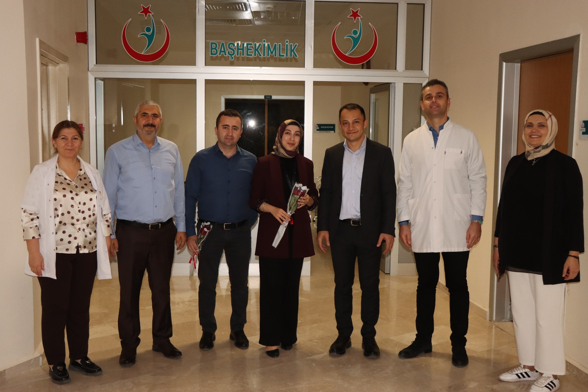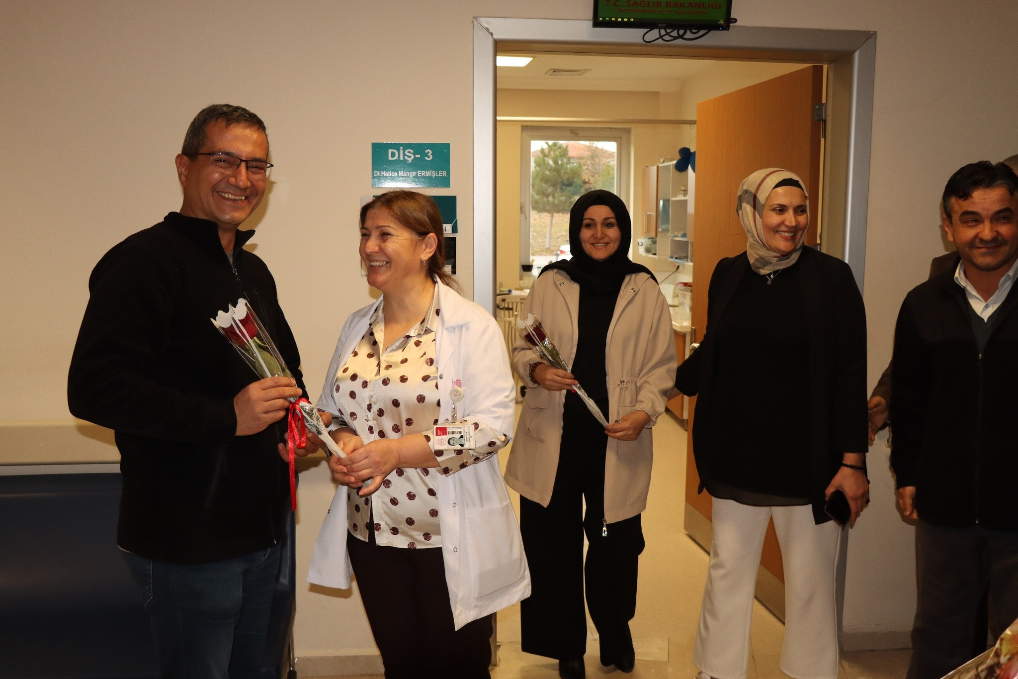 Başhekim Uzm. Dr. Sıtkı Küçükbuzcu, Başhekim Yardımcısı Dr. Kutay Güven, İdari ve Mali Hizmetler Müdürü Mesut Sodan, Sağlık Bakım Hizmetleri Müdürü Gülşen Parlakkaya, İdari ve Mali Hizmetler Müdür Yardımcısı Mustafa Akın ve Sağlık Bakım Hizmetleri Müdür Yardımcısı İlknur Gülol, hastanede görev yapan tıbbi sekreterleri tek tek ziyaret ederek çiçek takdim etti.