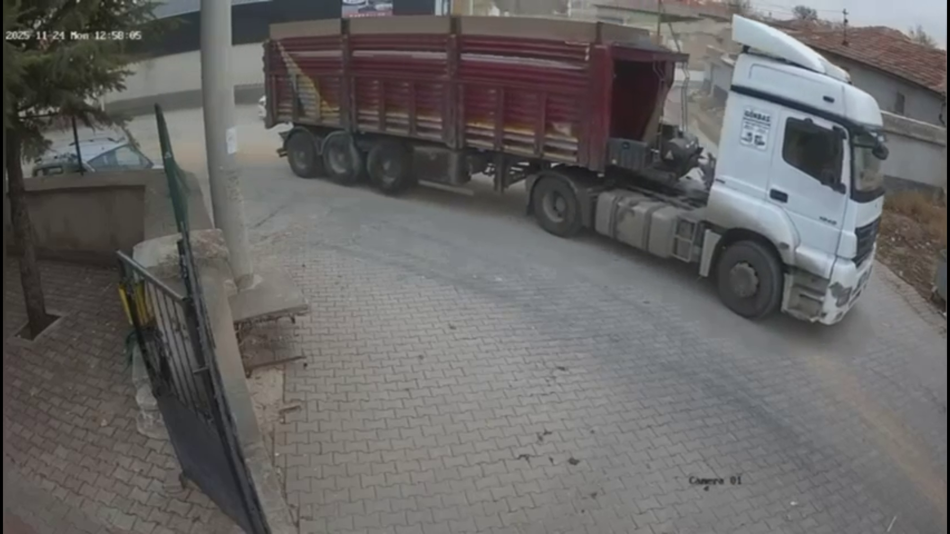 Görüntülerde TIR’ın kontrolsüz şekilde dönüşe geçtiği, otomobilin ise çarpışmamak için manevra yaptığı ve refüje çarptığı görülüyor.