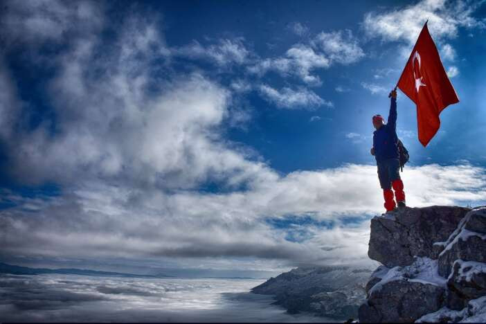 Doğasever ve fotoğraf tutkunu Mustafa Ünal tarafından kaydedilen son kareler, bu eşsiz doğa manzarasını bir kez daha gün yüzüne çıkardı. Fotoğrafta, zirvede dalgalanan bir bayrak ile yoğun bulut örtüsünün üzerinde konumlanan dağın dramatik duruşu dikkat çekiyor.