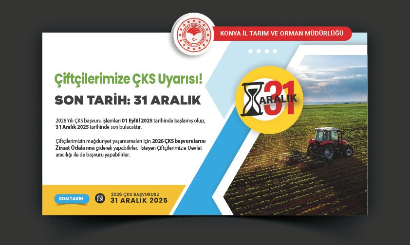 Konya İl Tarım ve Orman Müdürlüğü, 2026 üretim sezonuna ait Çiftçi Kayıt Sistemi (ÇKS) başvuruları için önemli bir uyarıda bulundu.
