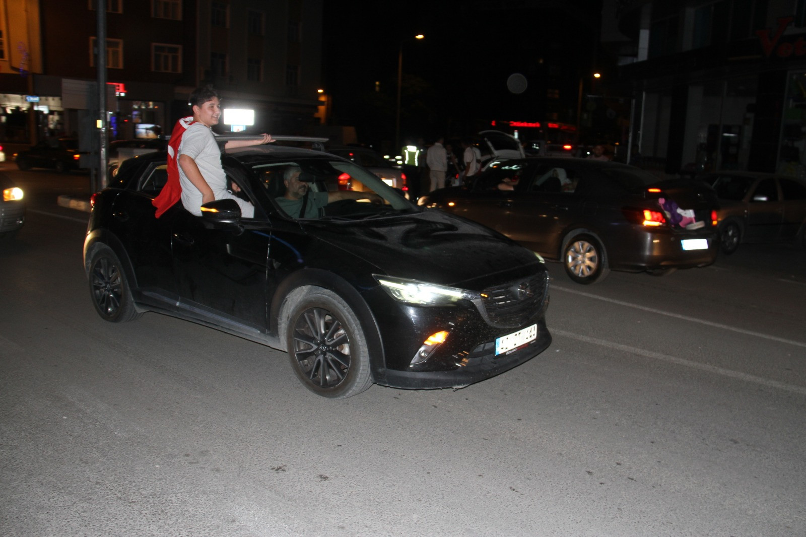 Meşaleler, sloganlar ve tezahüratlar eşliğinde araçlarıyla çarşı merkezine akın eden vatandaşlar, galibiyeti büyük bir coşkuyla kutladı.