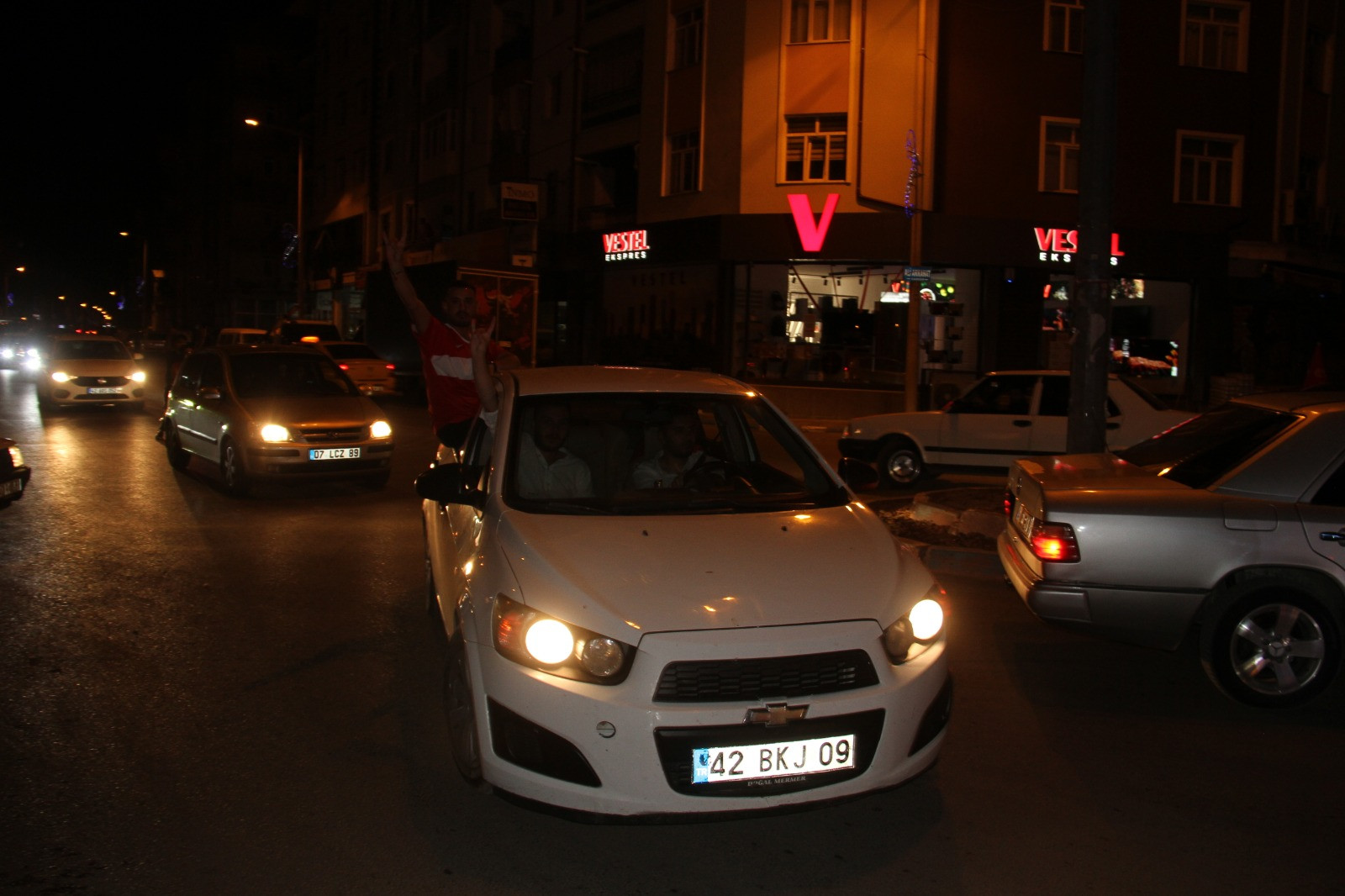 Anıt meydanında toplanan taraftarlar burada galibiyetin sevincini yaşarken, Atatürk ve Antalya Caddeleri üzerinde araç konvoyu oluşturan taraftarlar araçlarıyla tur atarak çeyrek final coşkusu yaşadı. Bayrak sallayan ve meşale yakan taraftarların coşkusuna 7’den 77’ye herkes ortak oldu. Polis ekipleri de taraftarların coşkusu esnasında kritik noktalarda önlem aldı.