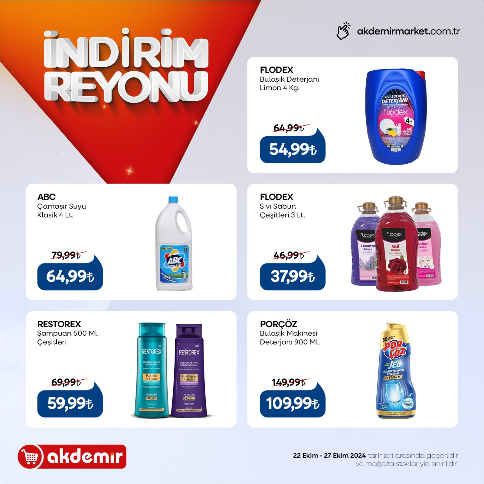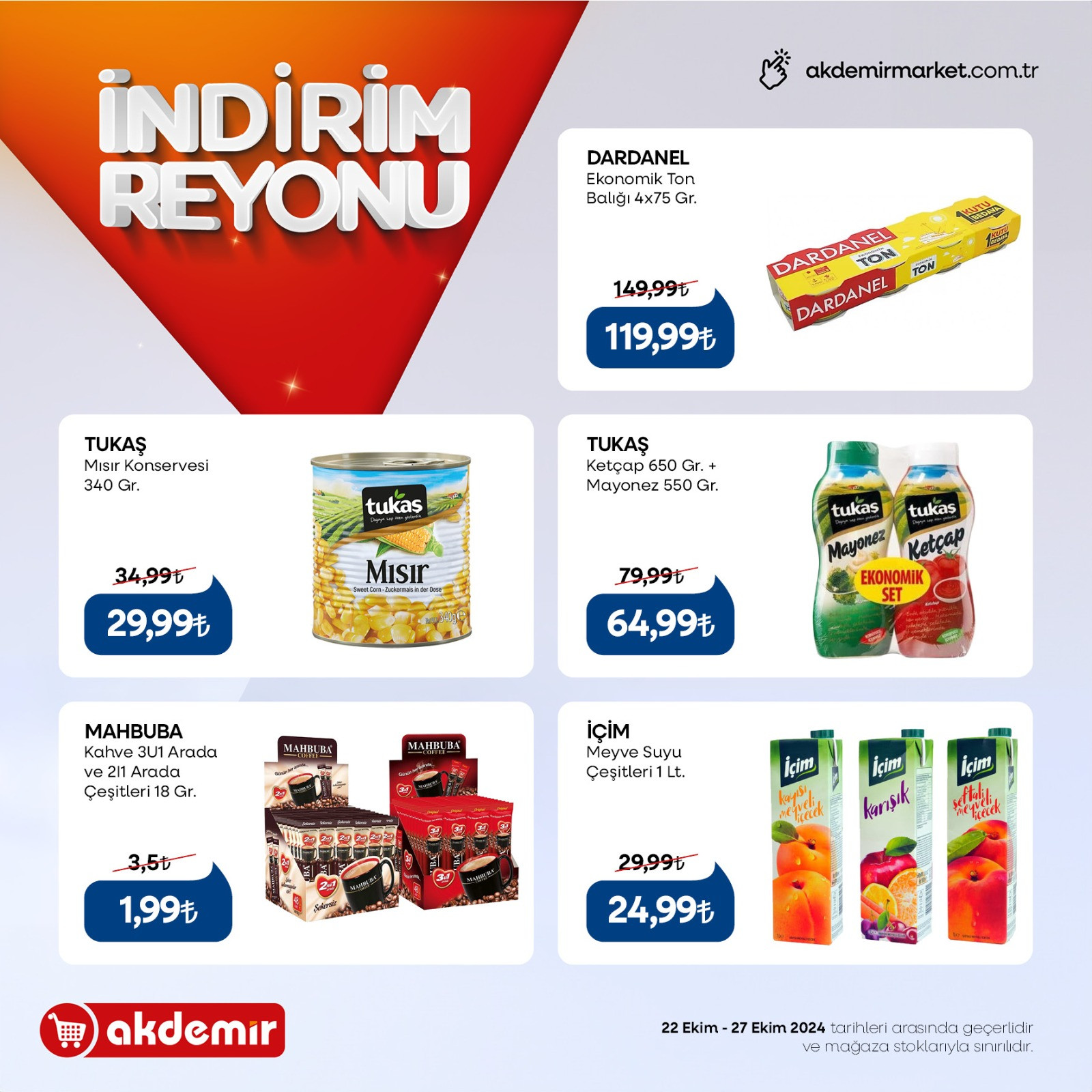 Akdemir Market, 22-27 Ekim 2024 tarihleri arasında geçerli olacak toplam 50 kalem üründe indirime gitti.
