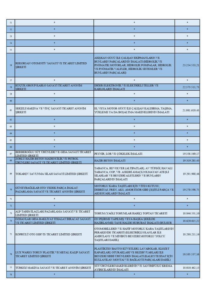 İkinci sırada plastik boru ve hortum imalatı yapan Akplas Plastik Sanayi ve Ticaret A.Ş. (104.488.235 TL) yer aldı.