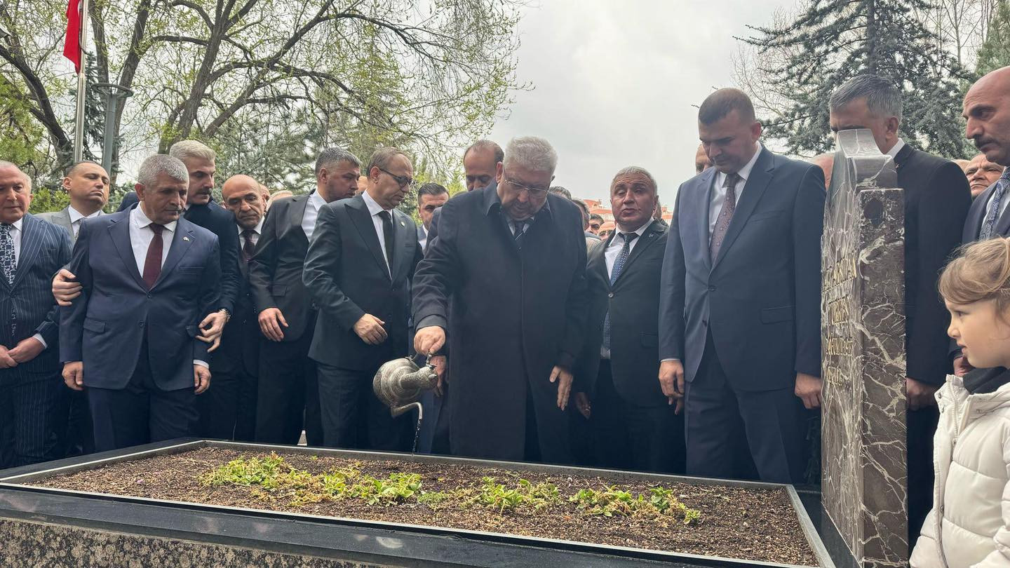 Kuran-ı Kerim okunmasının ardından dua edildi. Yalçın ve partililer daha sonra Türkeş'in mezarına karanfil bıraktı, bakır ibrikle su döktü.