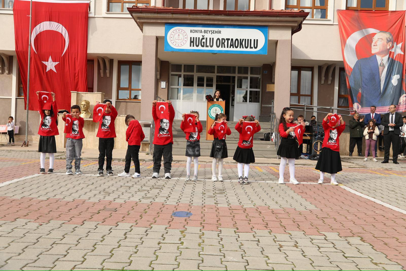 Yerleşim merkezindeki kutlamalara Huğlu Ortaokulu öğrencilerinin gösterileri adeta damgasını vurdu.