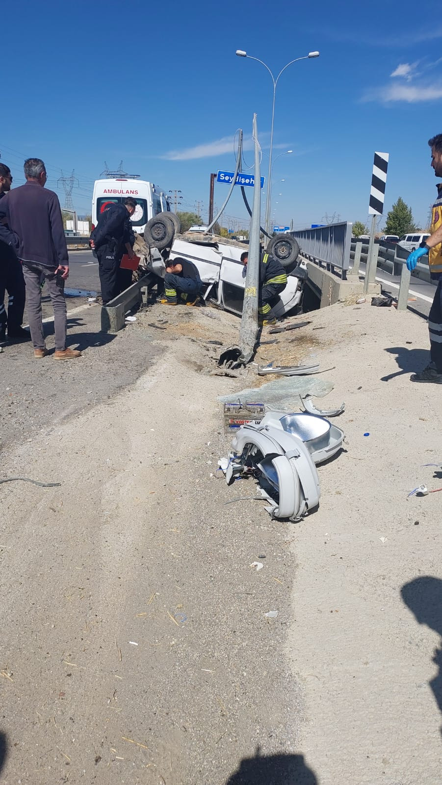 Direksiyon hakimiyetini kaybeden sürücünün kullandığı otomobil önce orta refüjde bulunan aydınlatma direğine çarptı. Ardından savrularak bariyerlere çarparak devrildi.