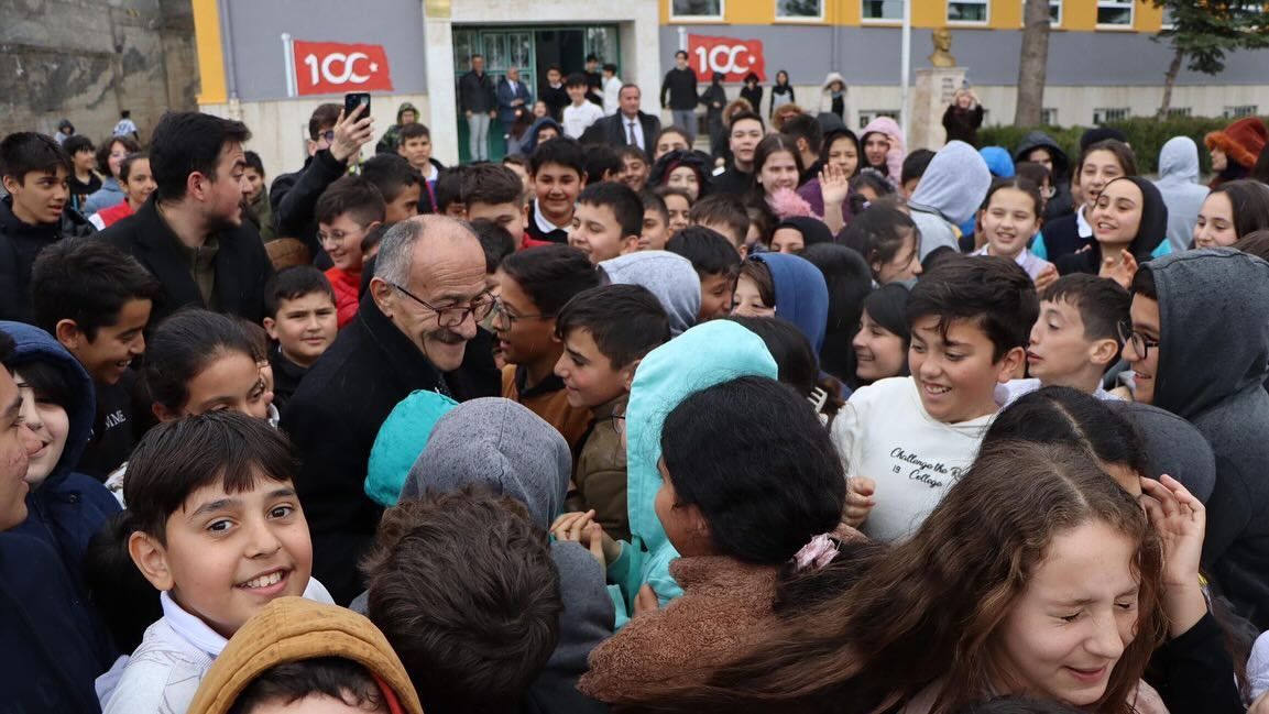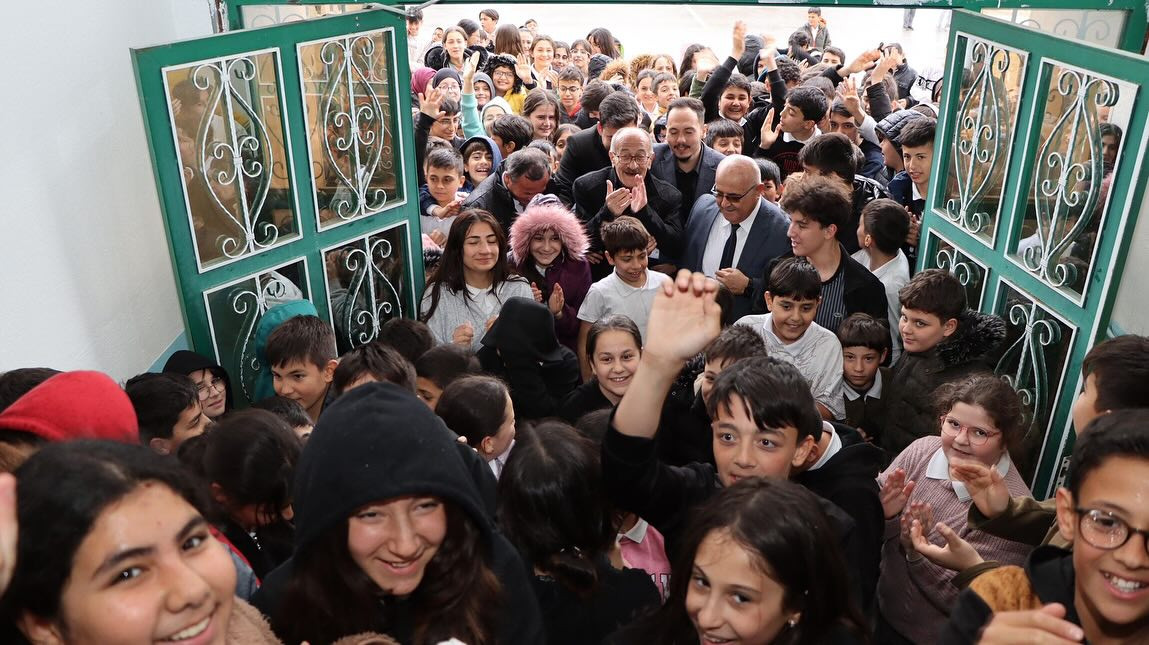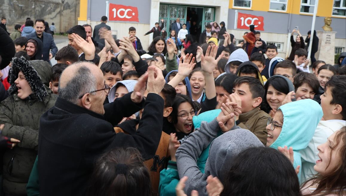 Bayındır, okul ziyaretlerinde öğrencilerin sevgi gösterileriyle karşılaştı.