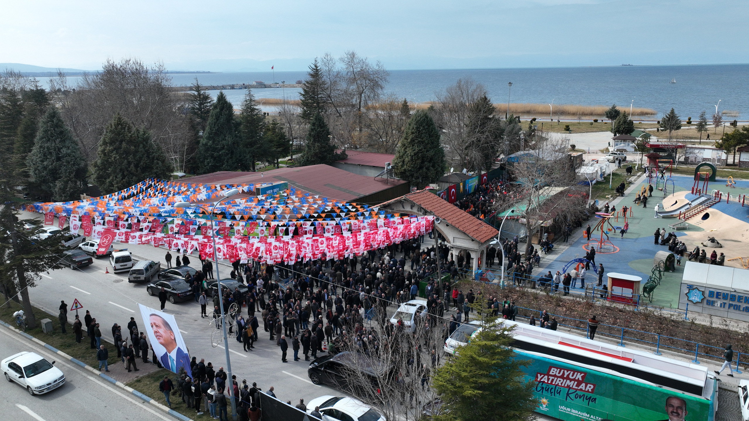Haydi Beyşehir! Patlasın sandıklar, gümbür gümbür hep birlikte bir 5 yıl daha hizmet için yürüyelim. Böyle güzel bir kalabalıkla bu meydanları dolduran Beyşehirli hemşehrilerime teşekkür ediyorum.”