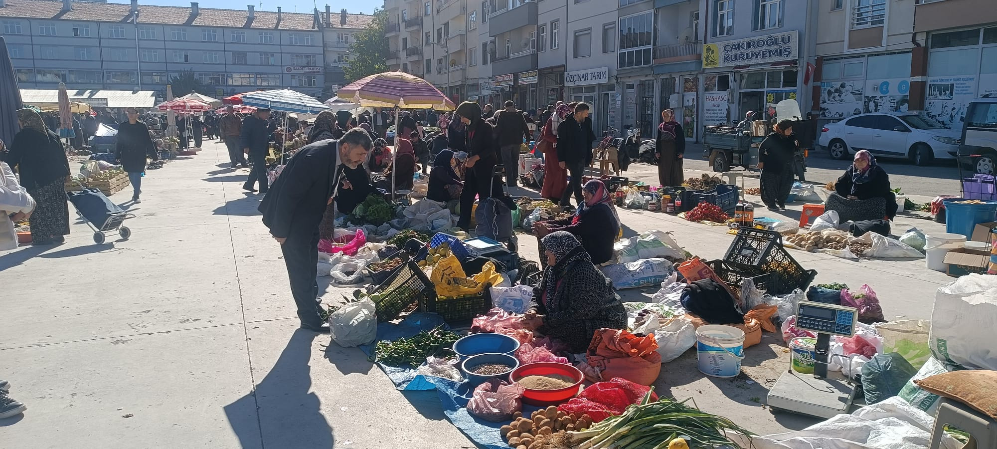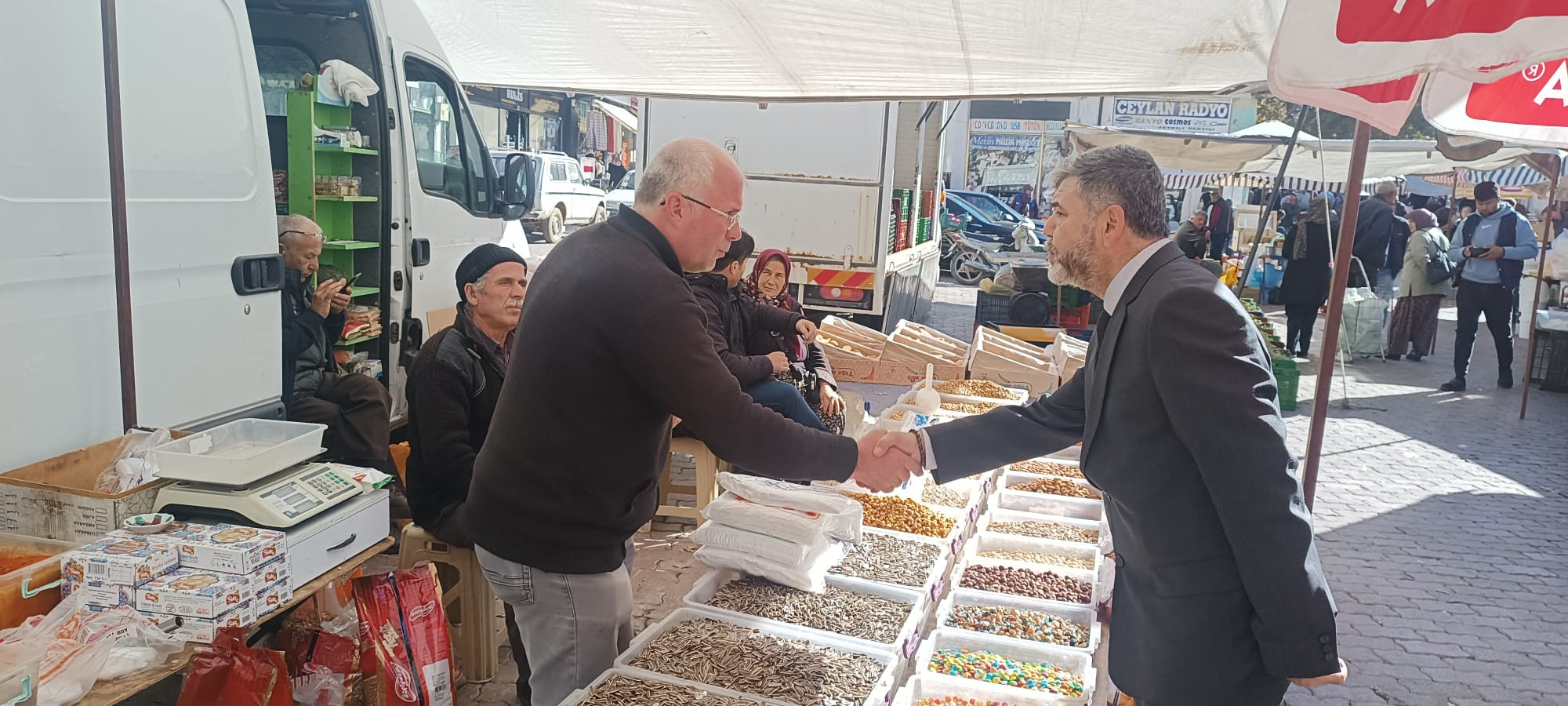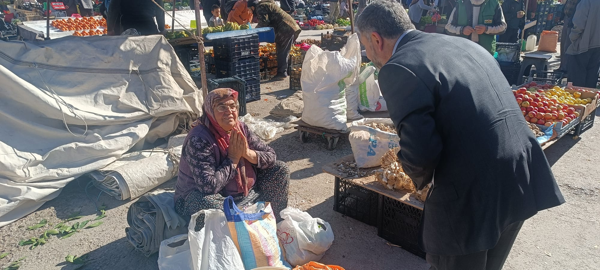 Muşmal, satış yerlerinde sohbet ettiği pazarcı esnafına işlerinde bol kazançlar dileğinde bulundu.