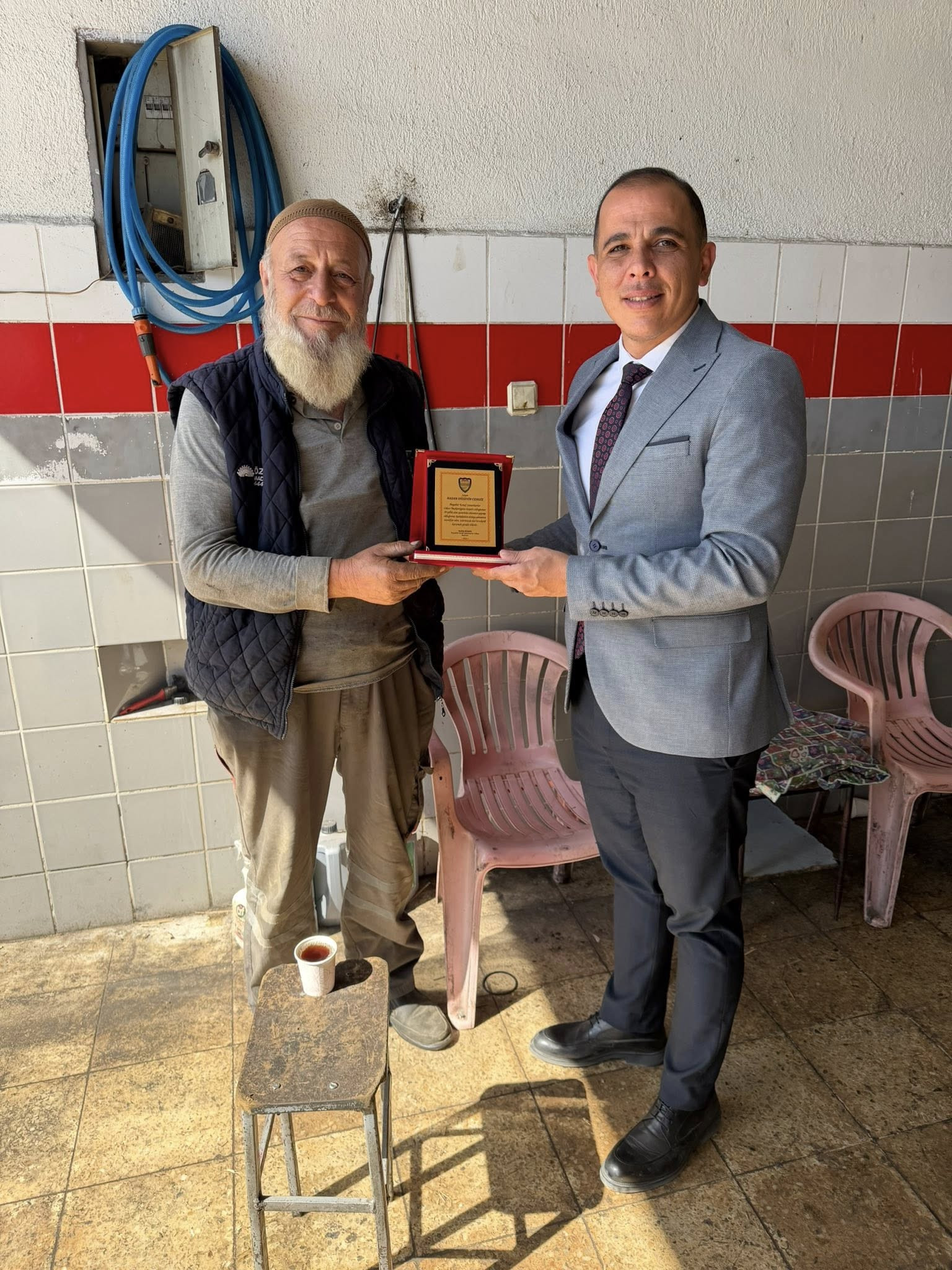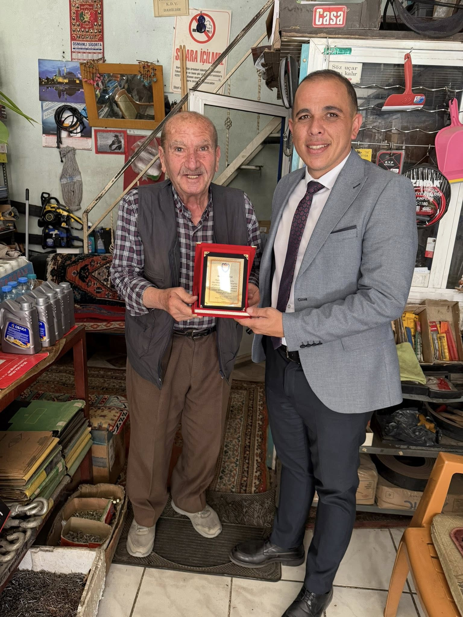 35 yıl ve üzerinde faaliyet gösteren esnaf ve sanatkarları mesai yaptıkları işyerlerinde ziyaret eden Esnaf ve Sanatkarlar Odası Başkanı Muhlis Bülbül, ilçe halkına neredeyse yarım asra dayanan hizmetlerinden dolayı teşekkür ederek plaket verdi.