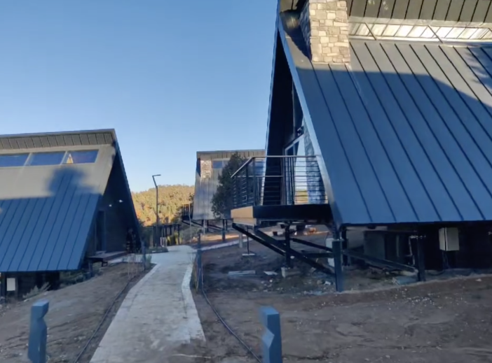 Son durumun görüntülendiği alanda, bungalov evlerin büyük ölçüde tamamlandığı, çevre düzenlemesi ve detay çalışmalarının ise devam ettiği dikkat çekti.