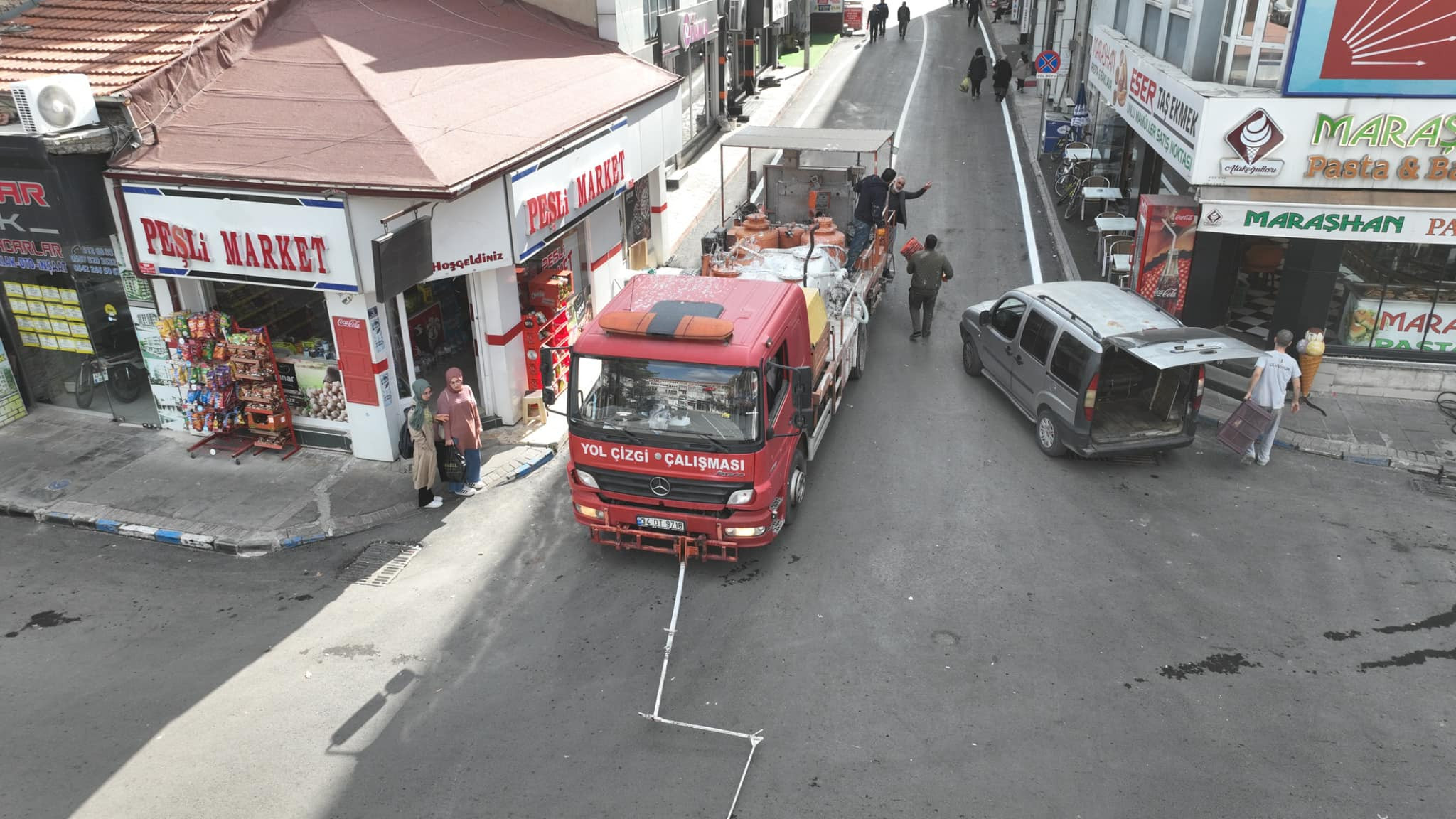 Beyşehir Belediyesi, kent merkezinde yürütülen yol yapım, onarım, düzenleme faaliyetleri kapsamında sıcak asfaltı tamamlanan caddelerde yol çizgileme çalışmalarına başladı.