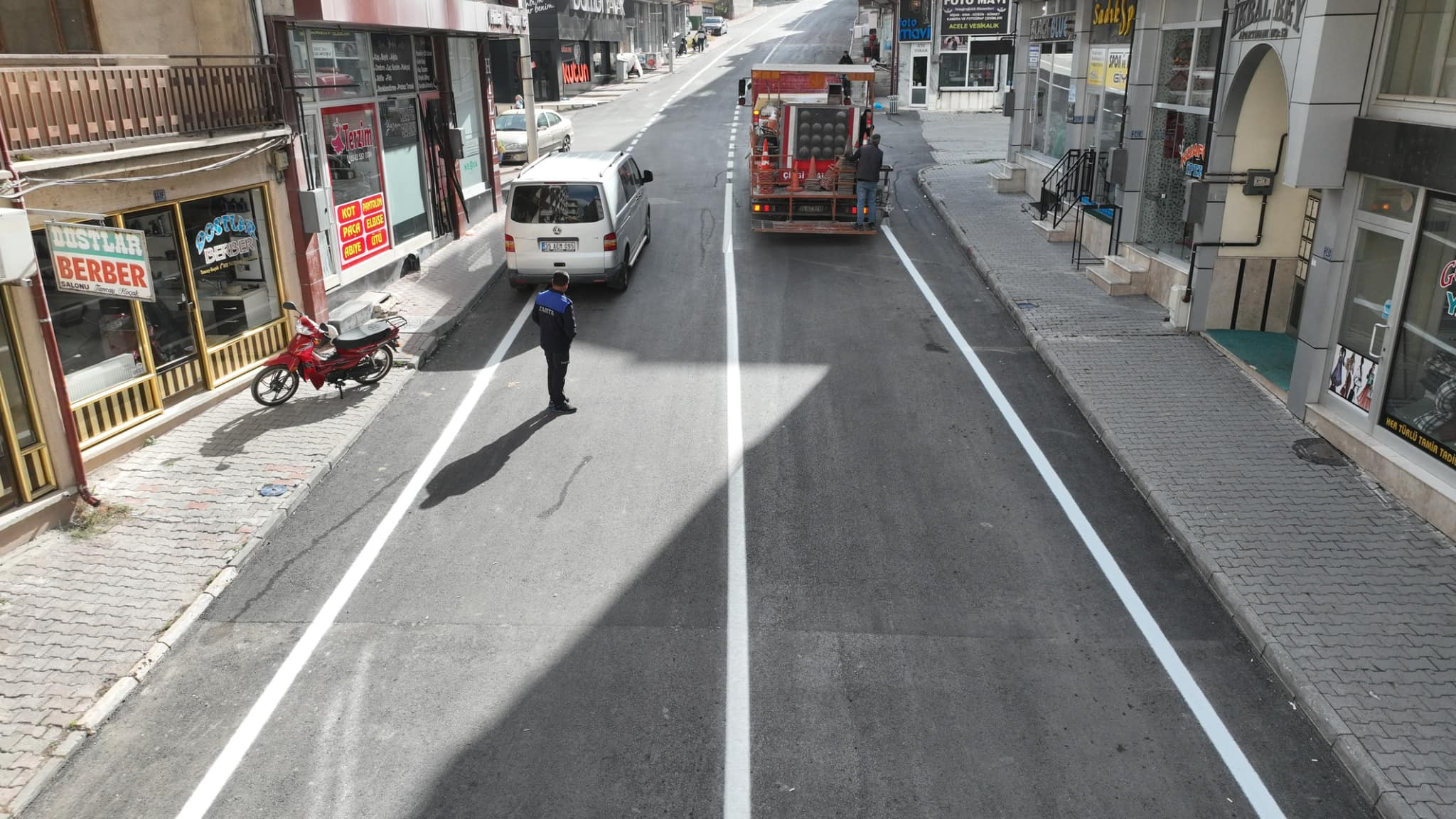 Beyşehir ilçe merkezinde sıcak asfalt konforuyla tanışan ana arterlerde çizgi çalışması başlatıldı.