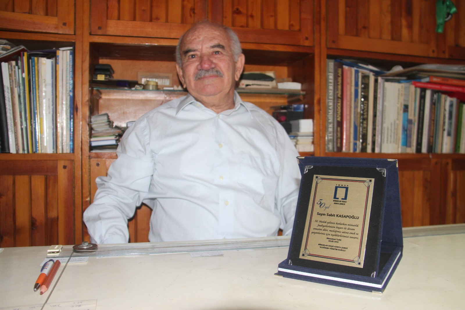 Türk Mühendis ve Mimarlar Odaları Birliği (TMMOB) Mimarlar Odası Konya Şubesi tarafından meslekte 50.yılını doldurmasından dolayı teşekkür plaketi takdim edilen Beyşehir’in ilk mimar mühendislerinden Sabit Kasapoğlu, “Mimarlık, öğrencilik yıllarımda hayalimdi, hayalim gerçekleşti, hayalimin arkasından da koştum.”diye konuştu.