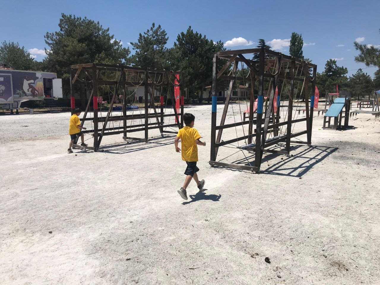Öğrenciler, Çumra Apa Spor Konya Kamp Alanı’nda “Macera Parkuru”nun heyecanını yaşarken; sahada dostluk ve oyunun tadına da vardı.