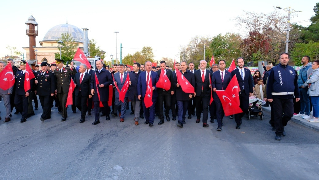 Konya’da Cumhuriyet’in 102. kuruluş yıl dönümü ve 29 Ekim Cumhuriyet Bayramı münasebetiyle fener alayı gerçekleştirildi.