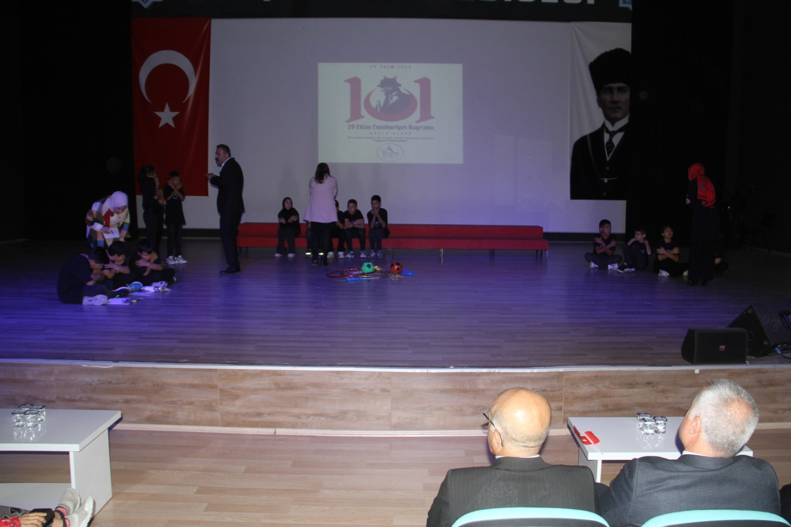 Programda daha sonra cumhuriyet korosu sahne aldı. Öğrencilerden oluşan koronun seslendirdiği marş ve türküler salonda büyük bir coşkuya sahne oldu. Koronun performansı, ayakta dakikalarca alkışlandı.